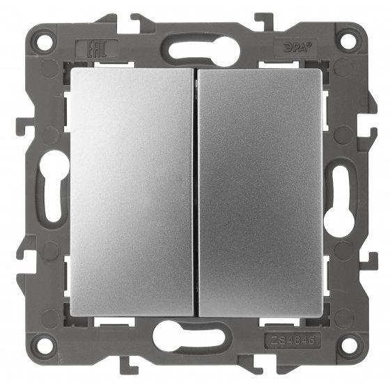 14-1104-03 ЭРА Выключатель двойной, 10АХ-250В, IP20, Эра Elegance, алюминий