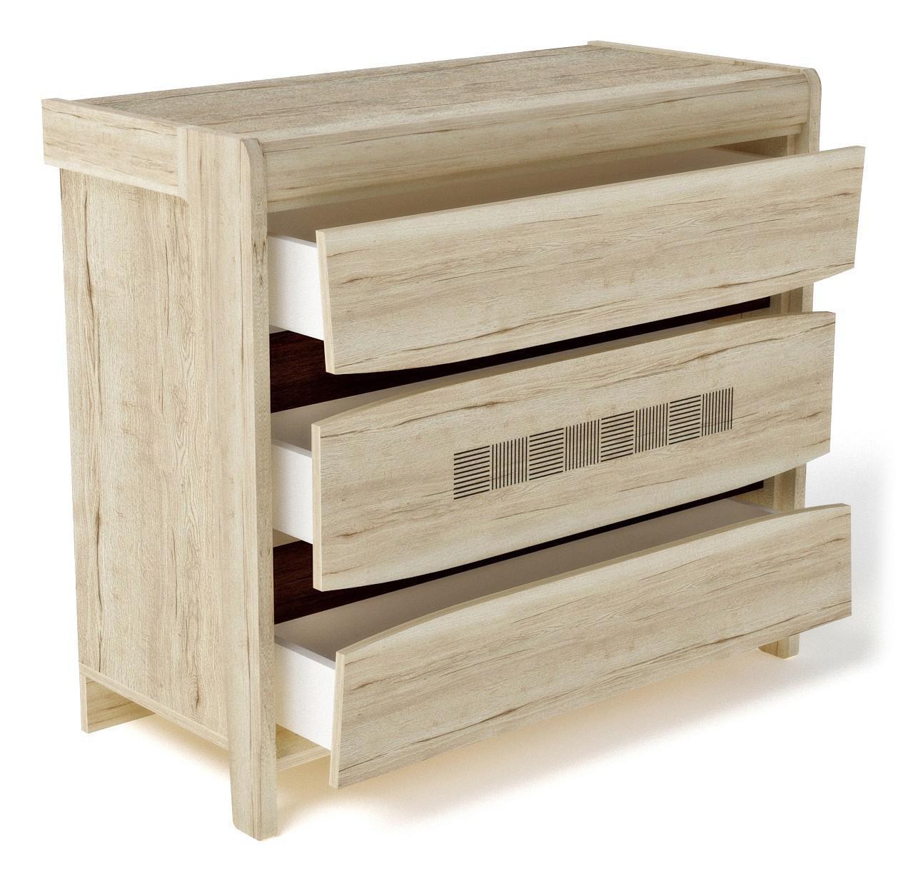 Мелочи создают общее настроение в интерьере, особенно, если лежат не на своем месте. Справиться с этой задачей поможет комод Мале , сделанный популярным брендом СБК. Производитель предлагает следующую комплектацию: 3 ящика. Матовый корпус изготовлен в благородном оттенке «дуб галифакс белый», прекрасно сочетающимся с расцветкой фасада (дуб галифакс белый), изготовленного из ЛДСП Е1. Благодаря оптимальным размерам комода (изделие длиной 834 мм, шириной 944 мм и выступом 434 мм), вы сможете расположить в нем все необходимое, при этом сохранив полезное пространство в комнате.