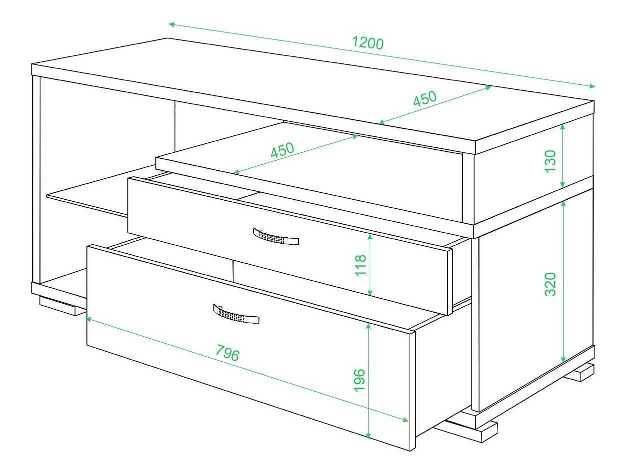 Тумба с двумя выдвижными ящиками для хранения, глубина ящиков - 335мм.