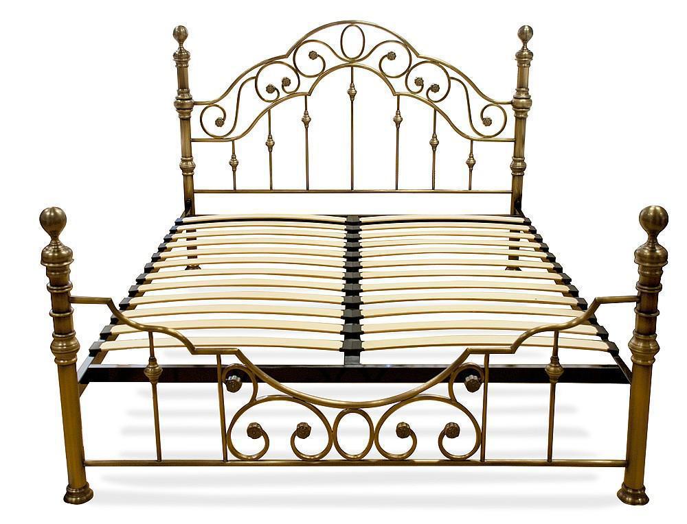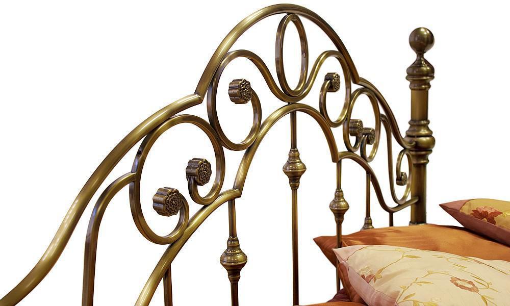Выполнена кровать на стальном усиленном каркасе с литыми декоративными и стыковочными элементами и наконечниками.