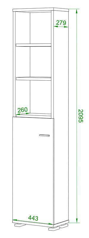 1 дверца, 4 полки