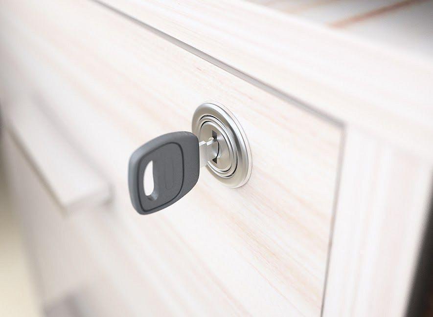 Верхний ящик закрывается на ключ.