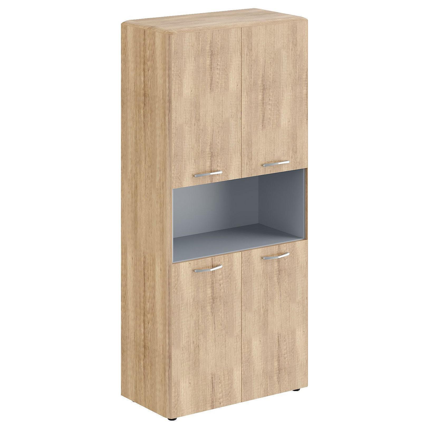 Рабочие папки падают со стола, а документы сложно найти в тумбе? Тогда вам обязательно стоит обратить свое внимание на шкаф комбинированный Dioni DHC 85.4 , созданный специалистами компании Skyland. Коллекция «Dioni» отличается сдержанностью и простотой форм, при этом размеры модели (ширина 892 мм, глубина 470 мм, высота 1950 мм), а также комплектация (4 дверцы, 4 полки) позволят легко разложить даже большое количество важных для работы аксессуаров. В качестве материала для изготовления корпуса был выбран износостойкий МДФ (оттенок «дуб каньон», верхний слой матовый), а значит изделие прослужит вам не один сезон. Приятных вам покупок!
