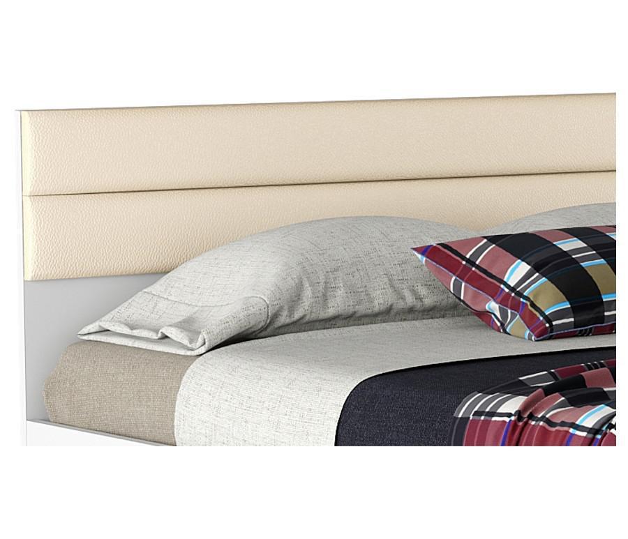 Изголовье кровати украшено двумя батонами из высокопрочного материала “Винилискожа”.