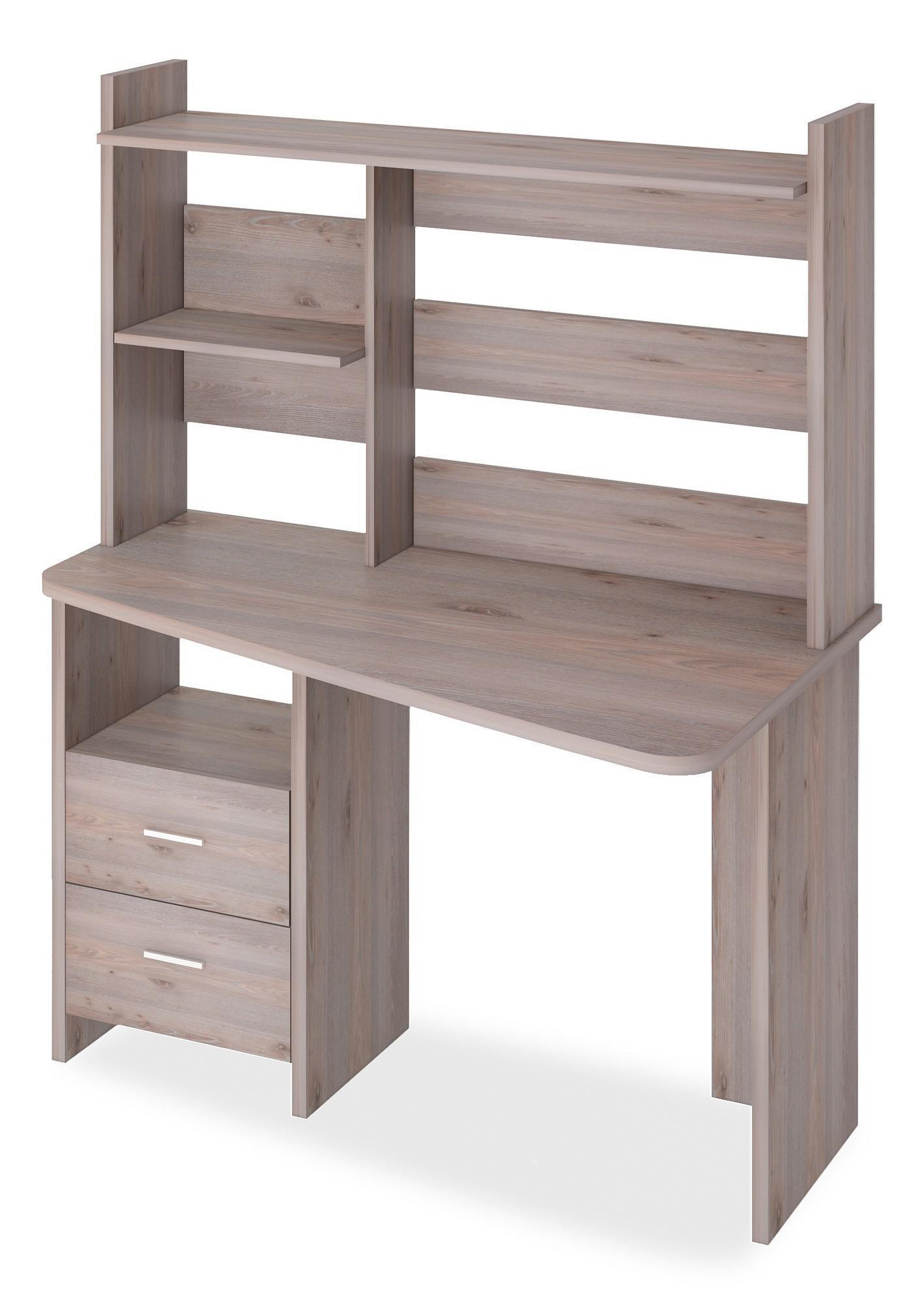 Компьютерный стол с трапециевидной столешницей и надстройкой.