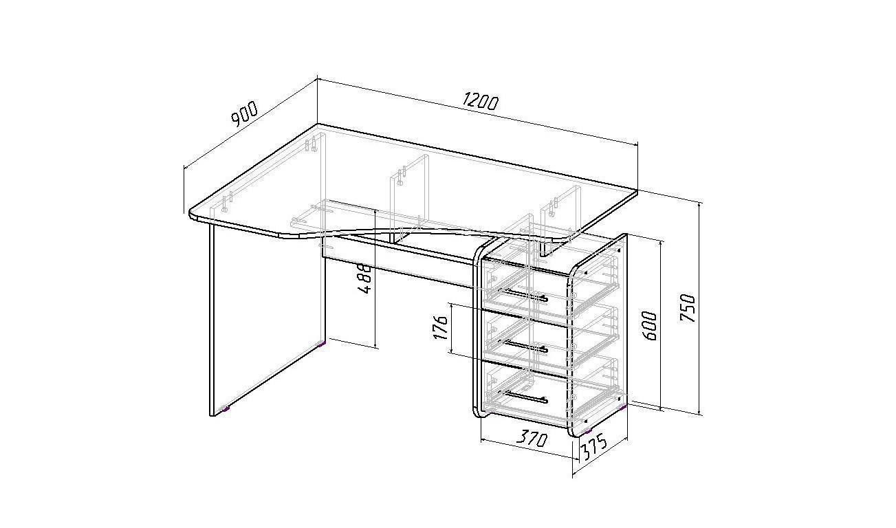 Работа или развлечения – Стол письменный Триан-5 , созданный брендом 2735035, прекрасно подойдет для реализации любых задач. Эта модель входит в серию «Триан» и адаптирован под нужды каждого члена семьи. Благодаря оптимальным размерам изделия (1200Х900Х750 мм) вы сможете с комфортом заниматься любимыми и важными делами. Базовая комплектация включает в себя непосредственно письменный стол, тумбочка: 3 ящика;, 1 полка. Для изготовления корпуса был выбран ЛДСП Е1 в оттенке дуб молочный, завершает дизайн матовый верхний слой, гармонично перекликающийся со столешницей.