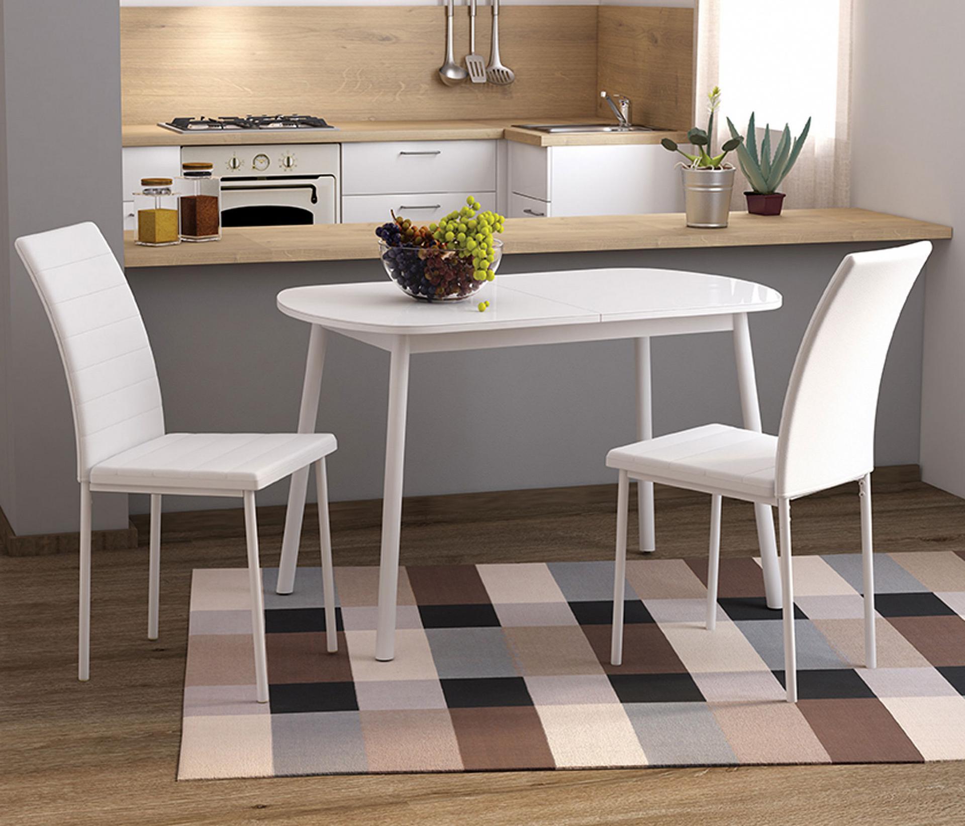 С помощью шариковых направляющих столешница раздвигается, дополнительная вставка из ЛДСП легко раскладывается одной рукой, увеличивая при этом длину стола до 152 см.