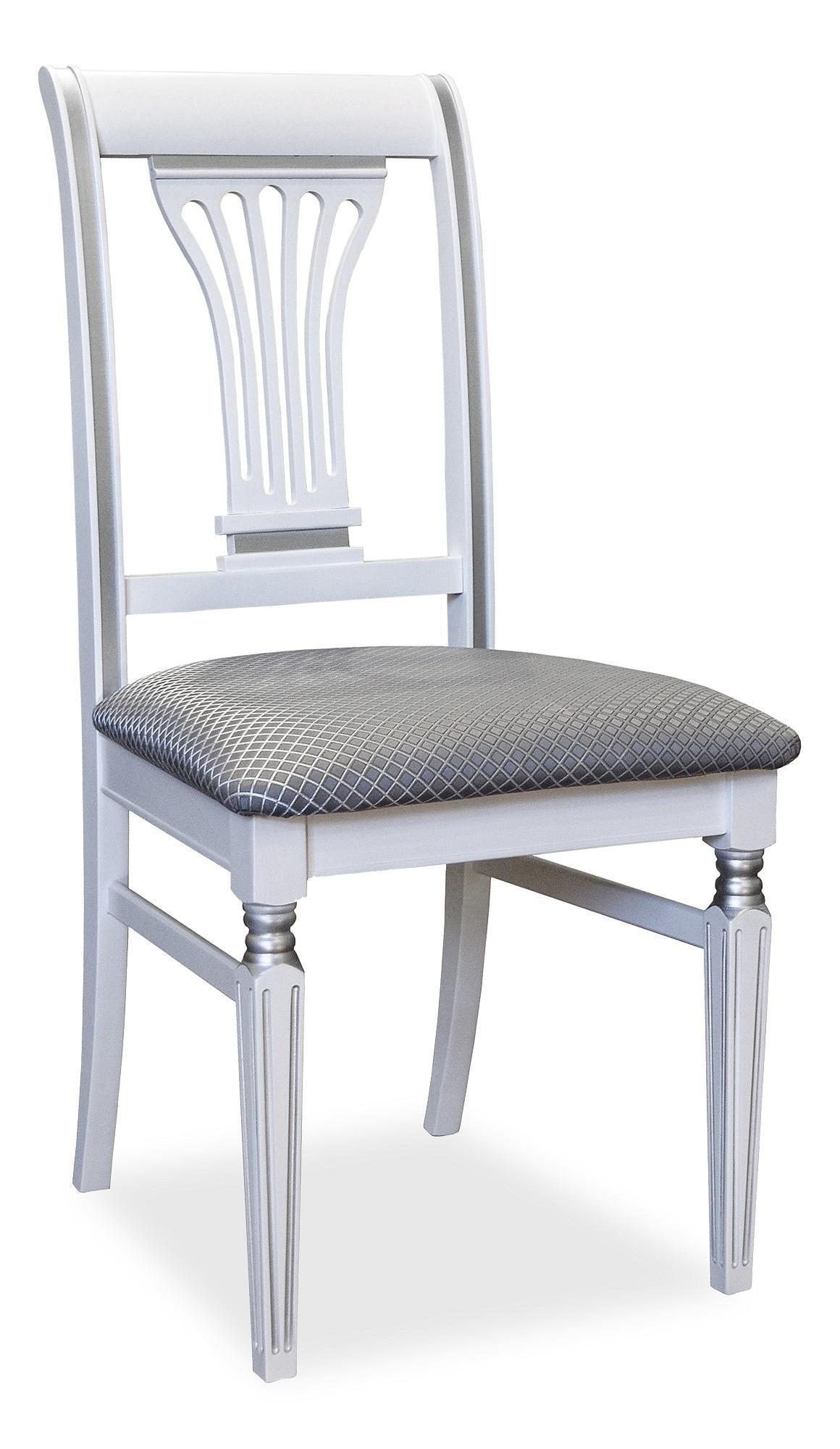 Стул отличается элегантными ножками с канелюрами и парадной розеткой в оформлении спинки.