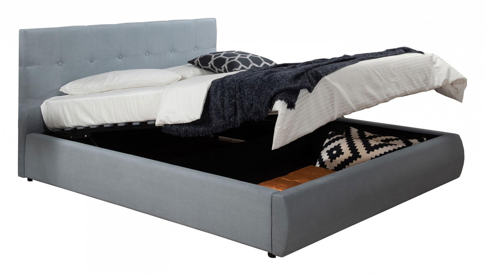 Кровать Селеста с высоким оригинальным изголовьем и подъемным механизмом имеет рельефную мягкую спинку с неглубокими стяжками, которые придают особую изысканность изголовью.