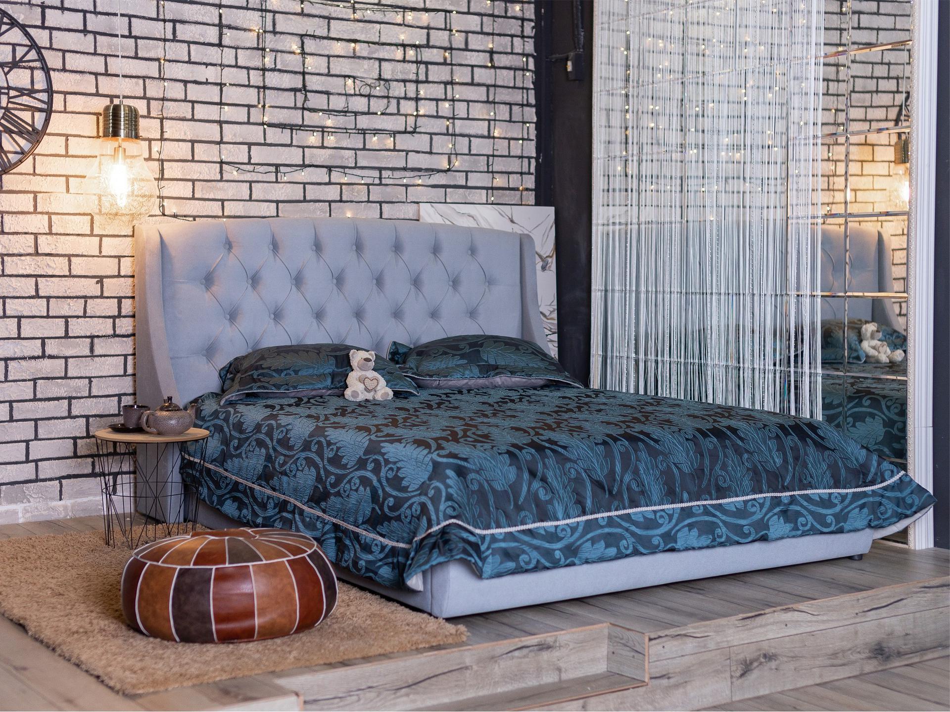Ценители прекрасного поистине оценят мягкую интерьерную кровать Stefani из ткани с ортопедическим основанием и высоким изголовьем.