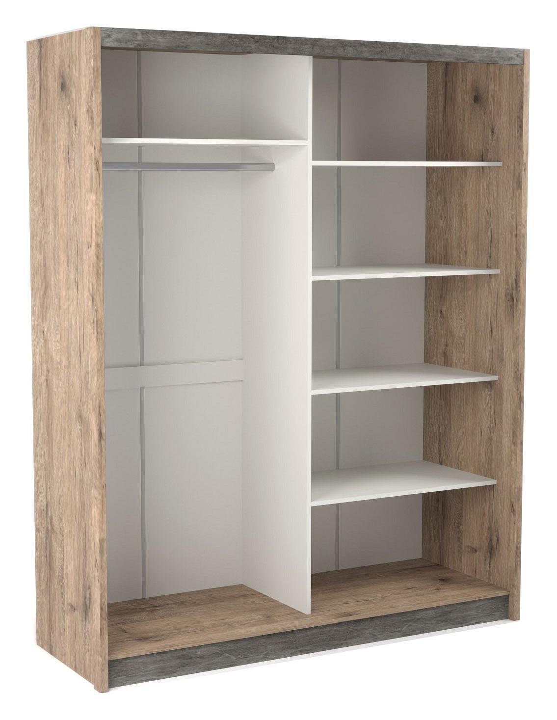 1 штанга для вешалок, 2 двери, 5 полок