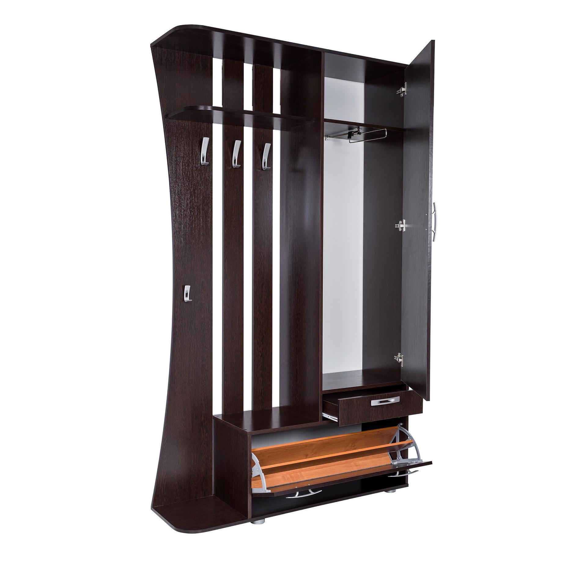 Стенка для прихожей Малави сочетает в себе все самое нужное для маленького пространства с необычайной практичностью. Шкаф для хранения одежды на плечиках, крючки для открытого хранения верхней одежды, удобная и вместительная полка под обувь, ниша для мелочей и зеркало.