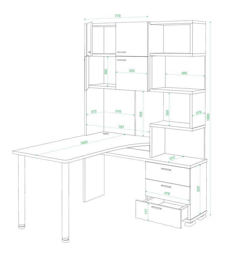 Компоненты, входящие в комплект стеллаж:3 ящика,4 дверцы,6 полок