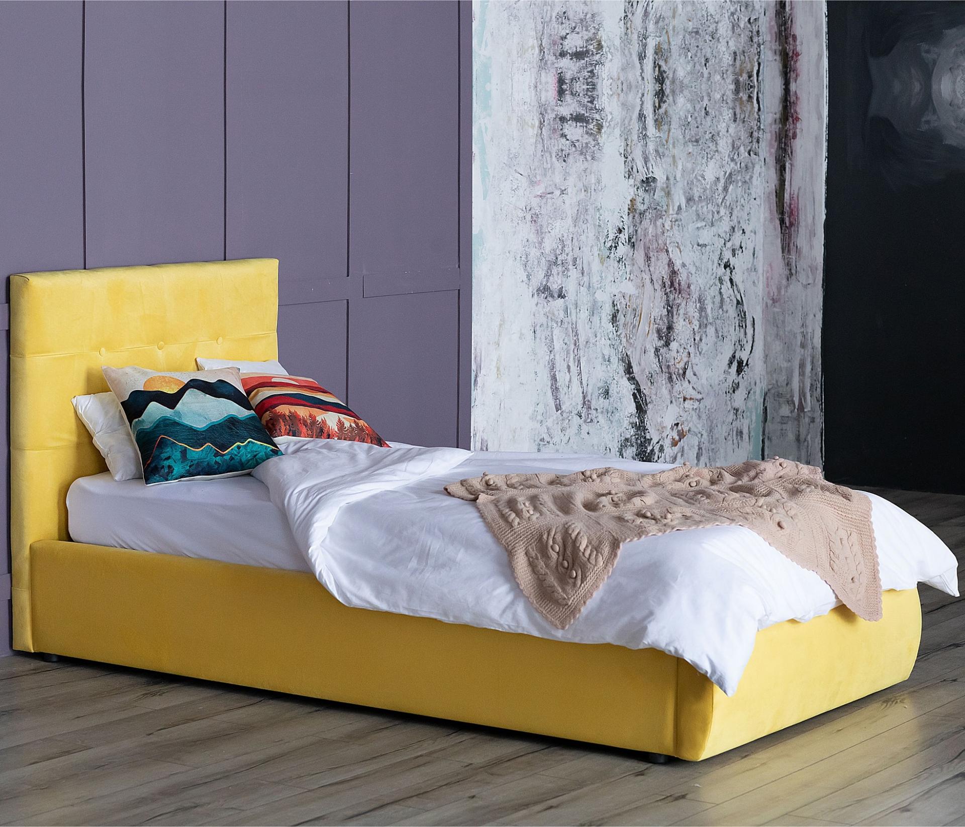 Кровать односпальная Selesta с матрасом PROMO B COCOS 2000x900 – хорошее решение для интерьера вашей спальни. Данная модель создана брендом Наша мебель (Россия) и входит в серию Selesta. Ее фактические размеры соответствуют 1040 мм в высоту, 1060 мм в ширину, а длина кровати составляет 2210 мм. Размеры спального места: 2000 мм в длину и 900 мм в ширину. Прочный и надежный корпус (ДСП, оргалит велюр, ЖЕЛТЫЙ) отлично подчеркивает элегантный дизайн модели. В комплект также входит матрас - 2000x900, основание ортопедическое, подъемный механизм, ящик для белья. Стоимость изделия 24990 руб. Приятных покупок!