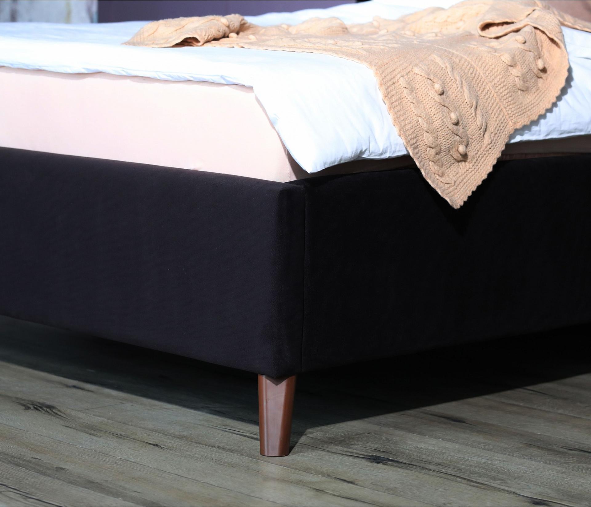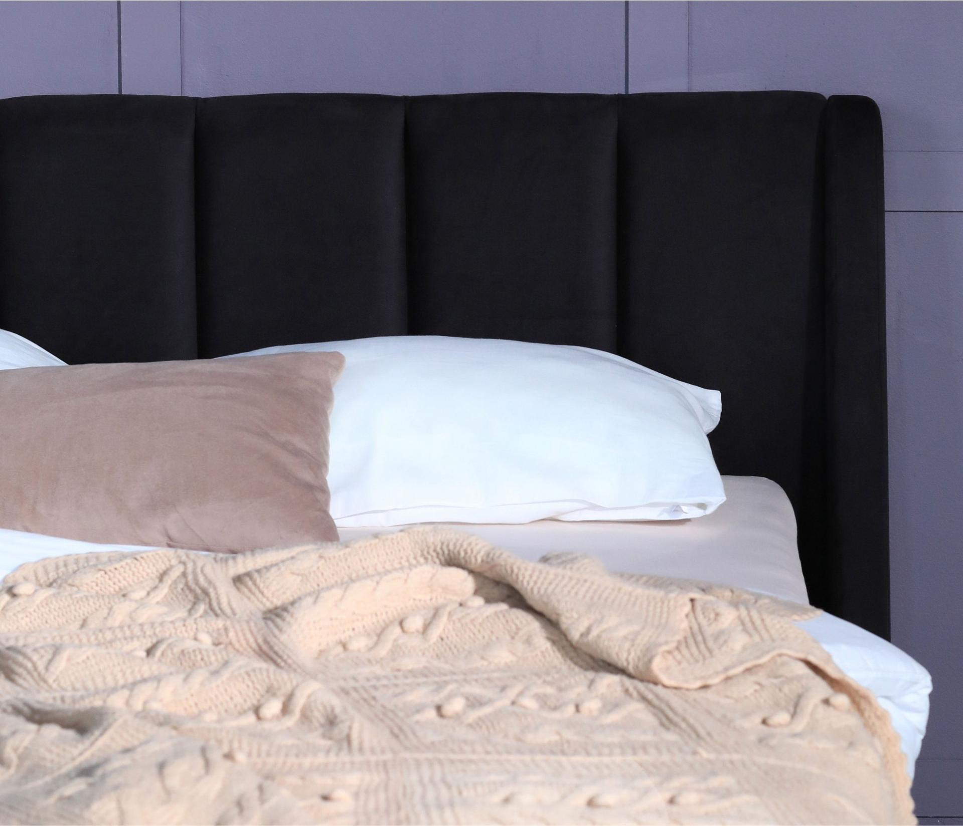 Кровать имеет рельефную мягкую спинку с неглубокими стяжками, которые придают особую изысканность изголовью. Обивка изголовья и весь периметр кровати выполнен из мебельной ткани – велюр. Ткань износостойкая, легко чиститься от загрязнений, практичная, эластичная, устойчивая к ультрафиолету.