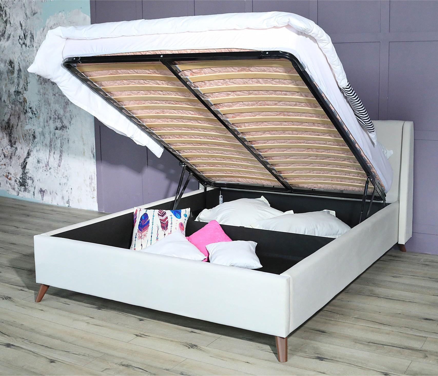 Газлифты повышенной мощности позволяют поднимать и опускать ортопедическую рамку с матрасом без всяких усилий. Подкроватная часть предназначена для хранения постельных принадлежностей, которое закрывается противопыльным матерчатым коробом из плотного спанбонда. Матерчатый короб фиксируется в подматрасном пространстве с помощью системы ленты-липучки "HOOK&LOОP".