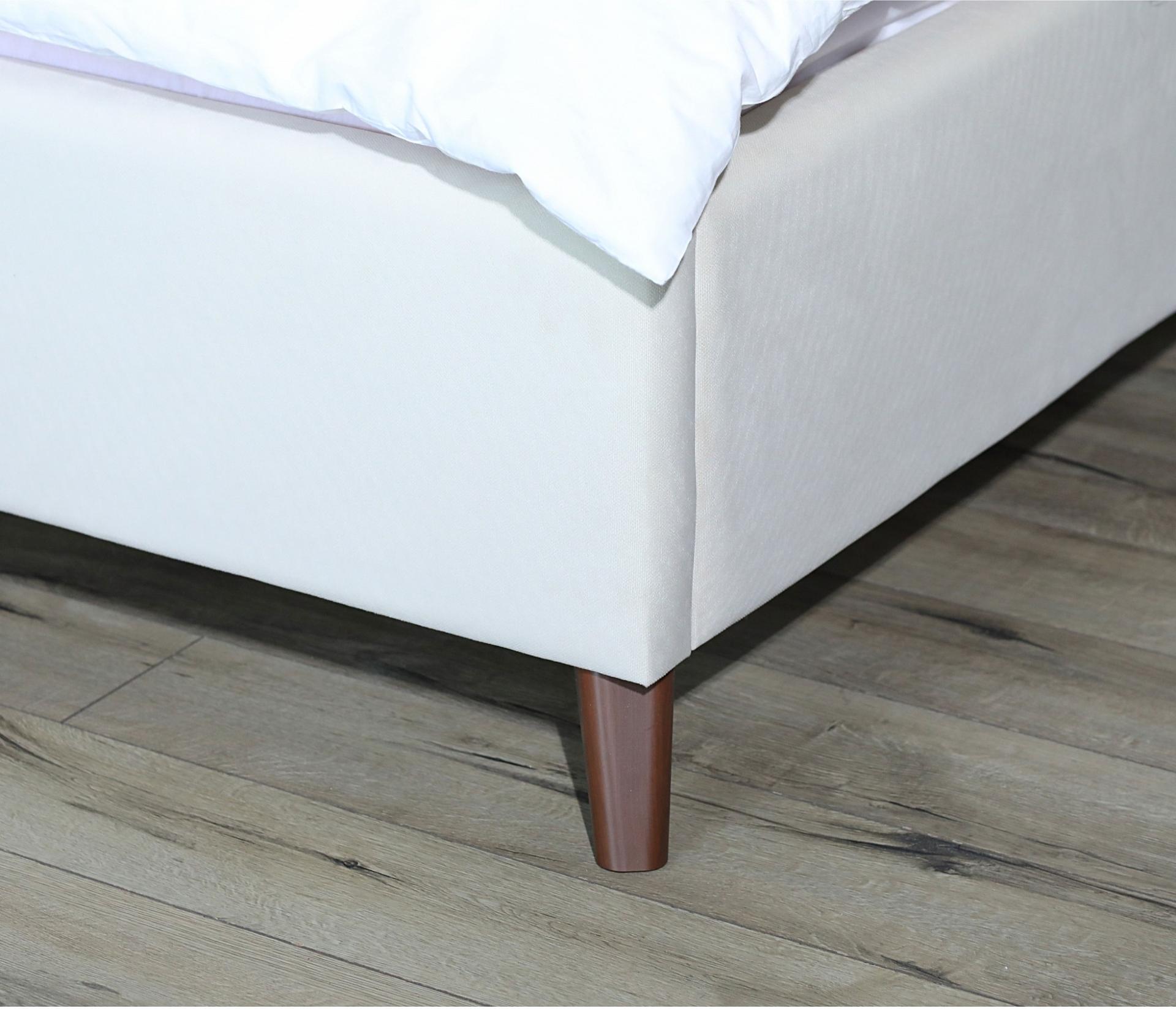 Кровать имеет рельефную мягкую спинку с неглубокими стяжками, которые придают особую изысканность изголовью. Обивка изголовья и весь периметр кровати выполнен из мебельной ткани – велюр. Ткань износостойкая, легко чиститься от загрязнений, практичная, эластичная, устойчивая к ультрафиолету.