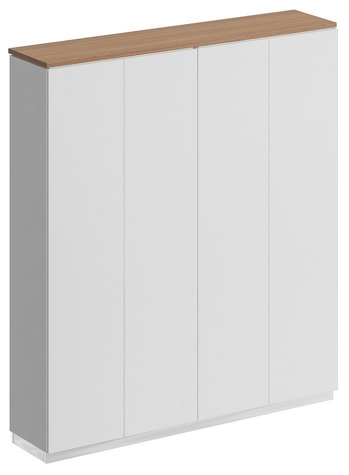 Шкаф состоит из 2-х стеллажей, топа на 2 шкафа, цоколя и дверей.