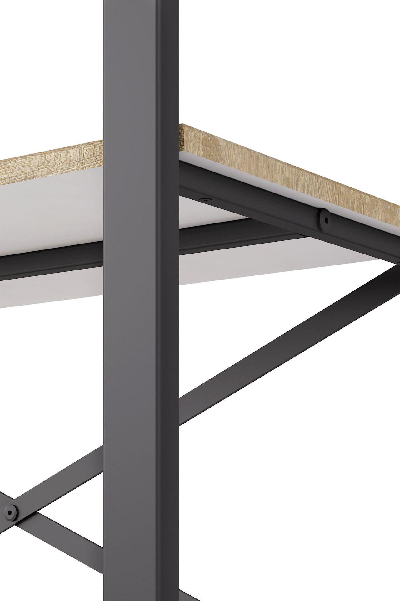 Сборно-разборный прочный металлический каркас стеллажа Хардвиг S выполнен из профильной трубы толщиной 40x20 мм. Дополнительную прочность добавляет стяжка, которую можно установить в любом проёме между полок. Сами полки выполнены из экологичного материала ЛМДФ, облицованного влагостойким декоративным покрытием.