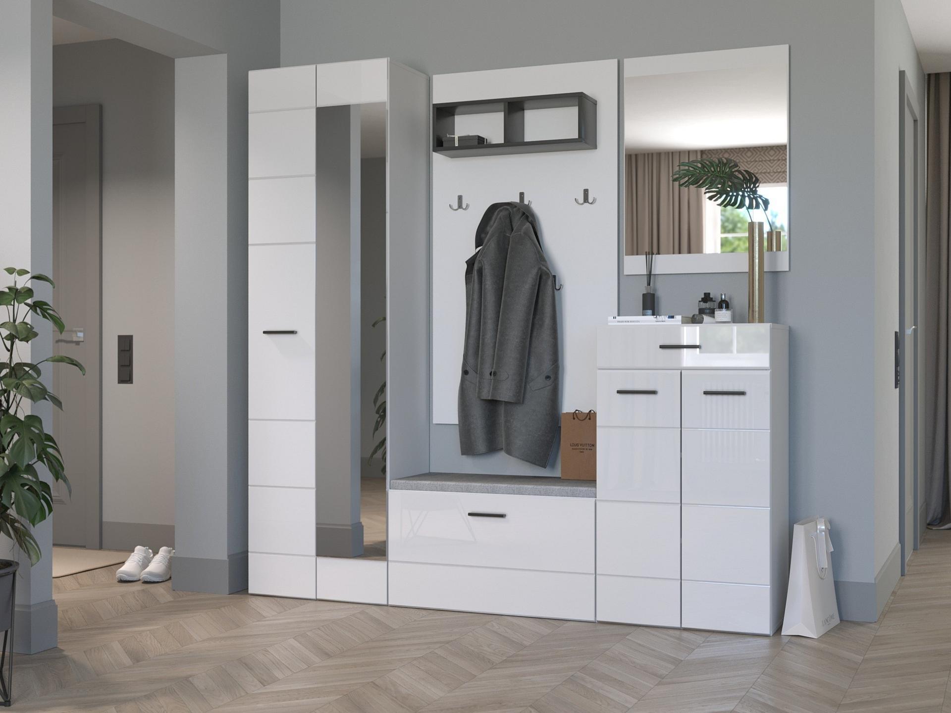 Шкаф платяной Gloss создан брендом НК-Мебель (Россия) и входит в серию Gloss. Глянцевый, зеркальный фасад сделан из качественных и надежных материалов (зеркало, МДФ) и гармонично дополняет матовый корпус изделия. Шкаф платяной Gloss наиболее актуален для таких зон, как гостиная, кабинет, прихожая, спальня и имеет следующие габариты: 600 мм. в ширину, 2050 мм. в высоту, глубина шкафа составляет 376 мм. В комплектацию данной модели входит 1 выдвижная штанга для вешалок, 1 дверца, 2 полки, входящие в комплект, а срок изготовления обычно не превышает 14 дней. На товар распространяется гарантия 24 месяцев. Приобрести шкаф платяной gloss можно в интернет-магазине Mebelion.ru за 9390 руб.