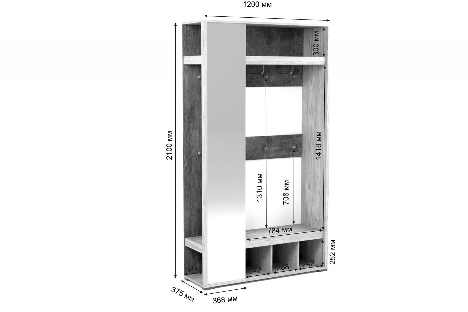 2 полки, зеркало, крючки