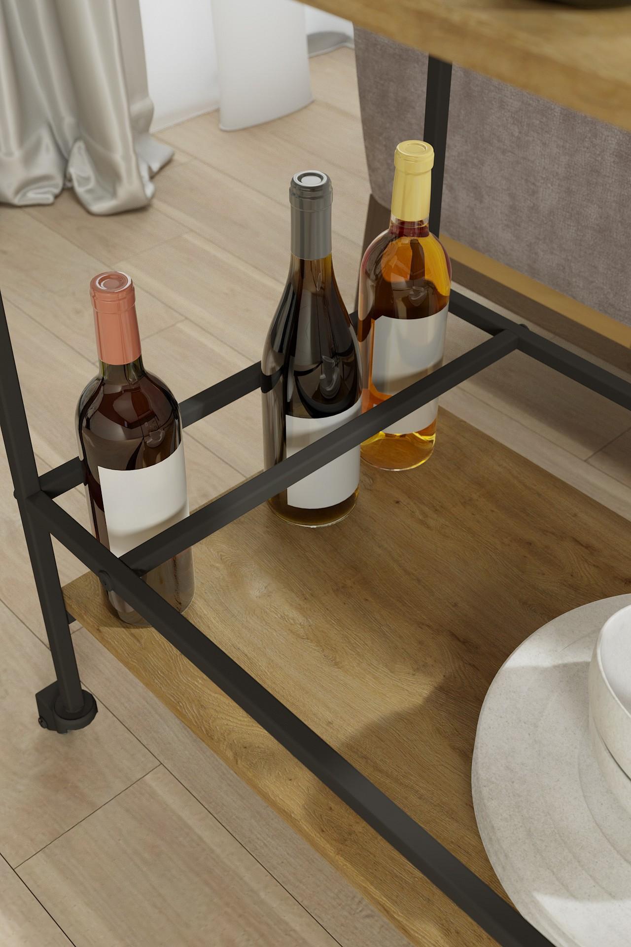 Сервировочный столик Спич оснащен дополнительным местом для хранения напитков, вместительной столешницей и прочными поворотными колесами для плавного и бесшумного перемещения. Каркас выполнен из профильной трубы, столешница и полка - из прочного и влагостойкого материала МДФ, облицованного декоративным покрытием в современном цветовом решении.