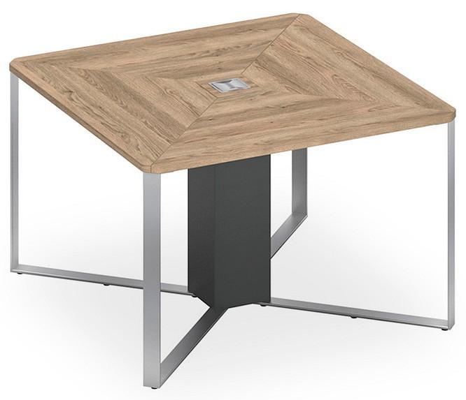Стол состоит из столешниц (4 шт.), опорной тумбы, металлокаркаса и соединительных пластин (4 шт.). Металлокаркас состоит из 4-х опор угловых, которые размещены по диагонали стола и установлены под углом 90° друг к другу. «L»-образная металлическая опора выполнена из стальной трубы прямоугольного сечения. Элементы опоры соединены при помощи электросварки и имеют защитное лакокрасочное покрытие – порошковая краска.