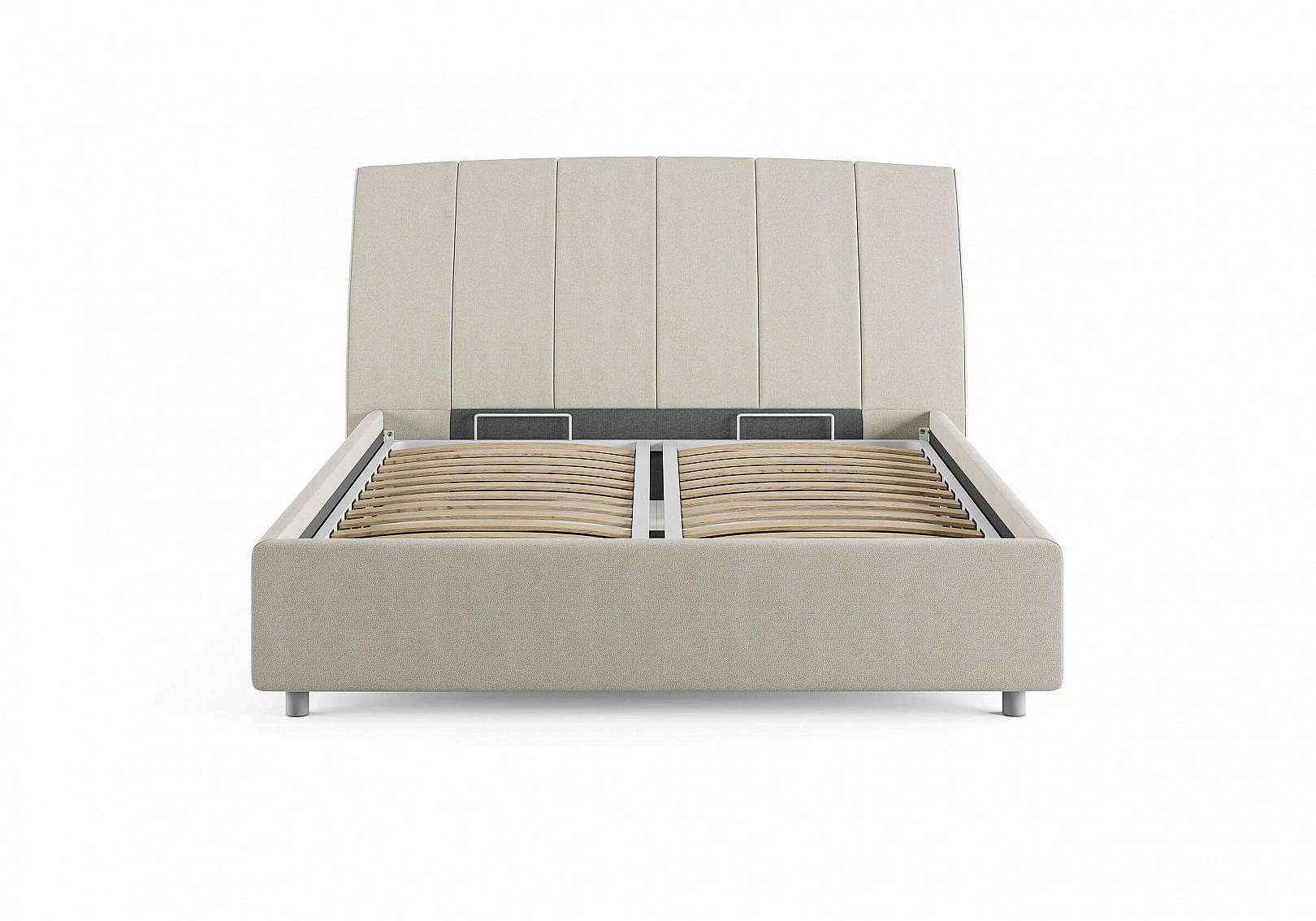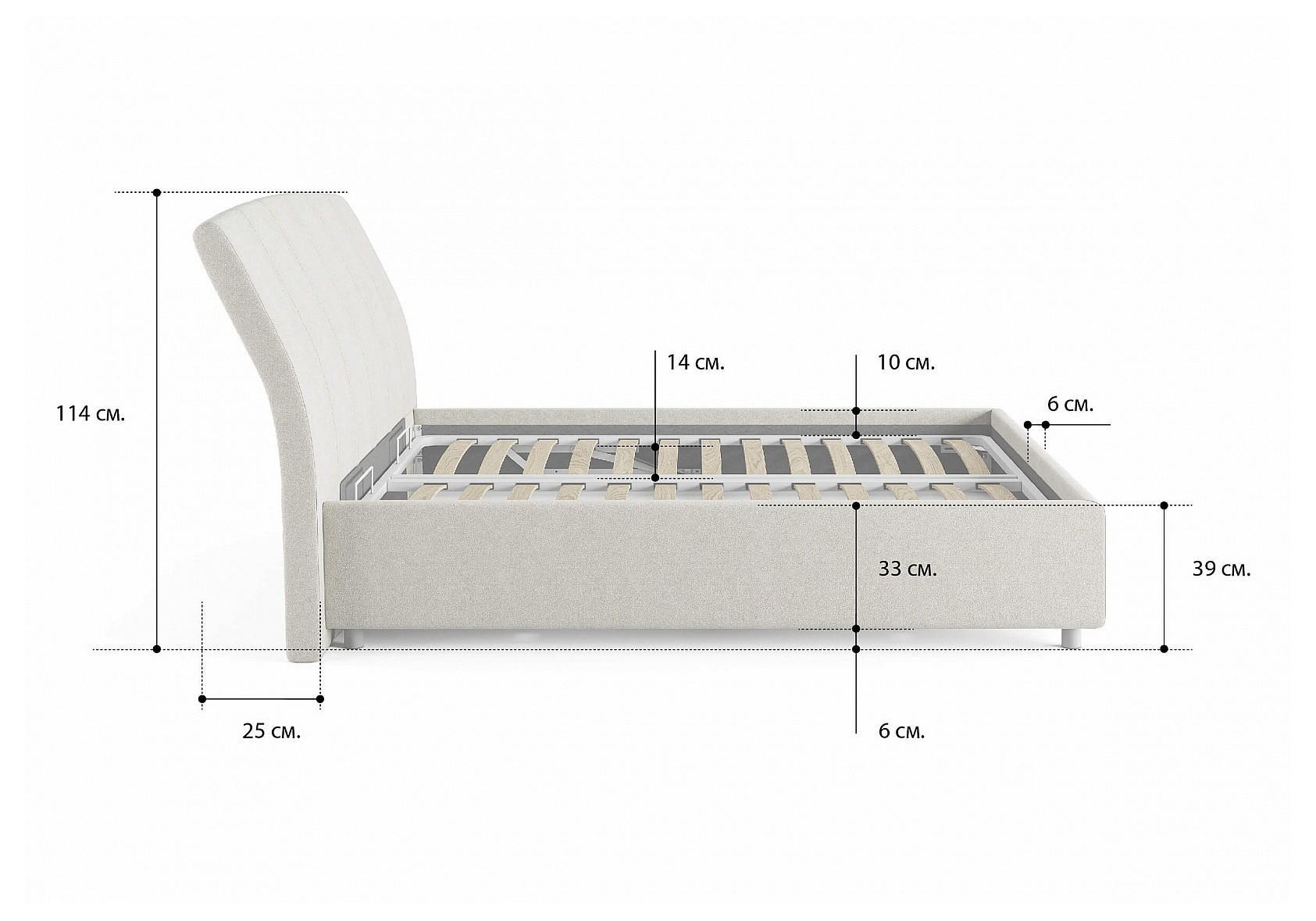 Стильная интерьерная кровать с изогнутым изголовьем и широкими царгами. Модель изготовлена из ДСП. В комплект кровати входит кроватное основание. Каркас основания выполнен из металла, ламели - из берёзы.
