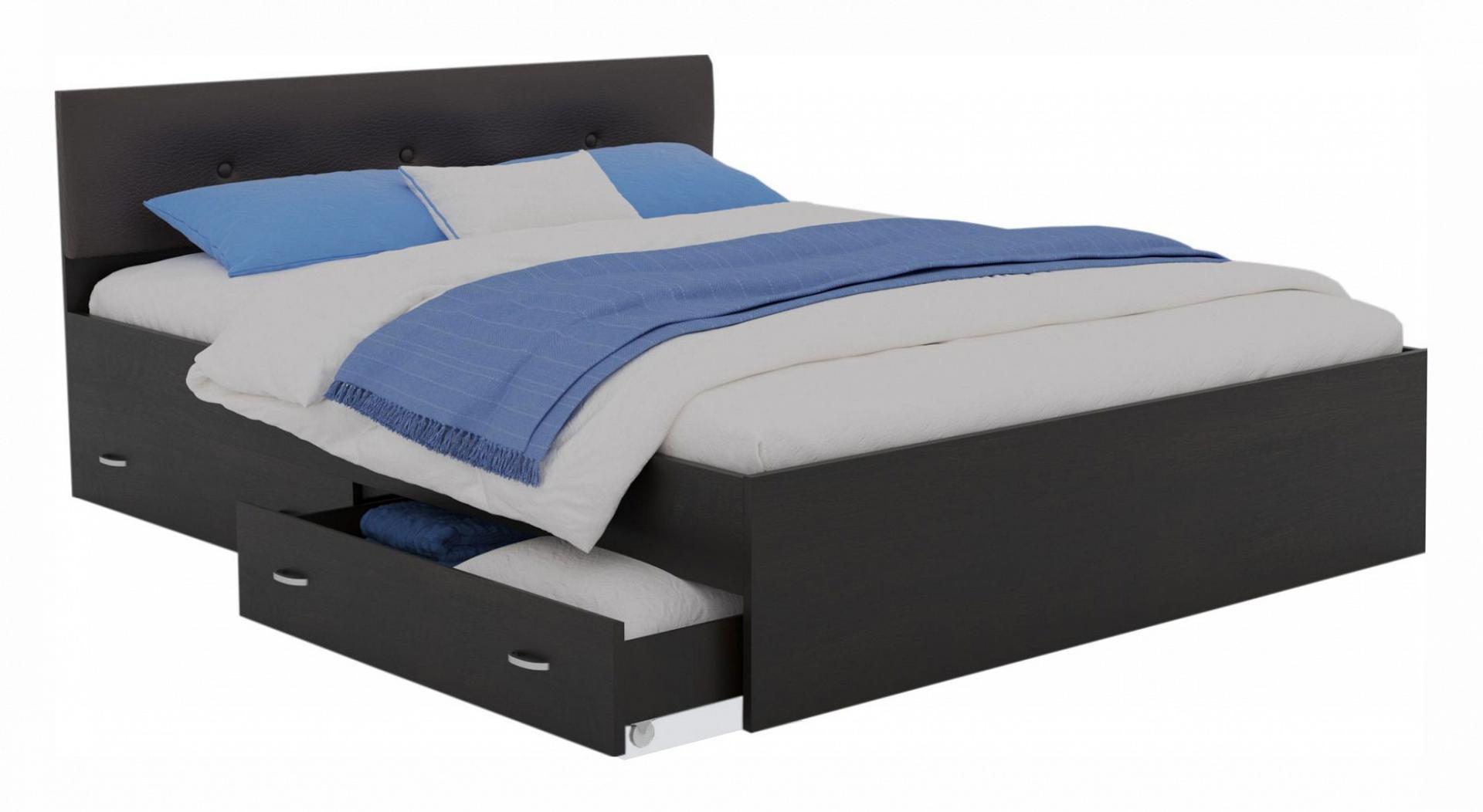 Двуспальная кровать с мягким кожаным изголовьем Виктория ЭКО-П в цвете венге – интересное и стильное решение для вашей спальни.