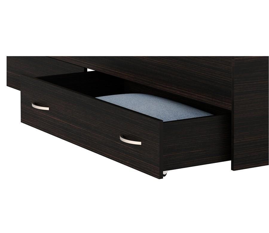 Кровать укомплектована двумя выдвижными ящиками – ящики могут быть установлены с любой стороны по длине кровати. С другой стороны – царга.