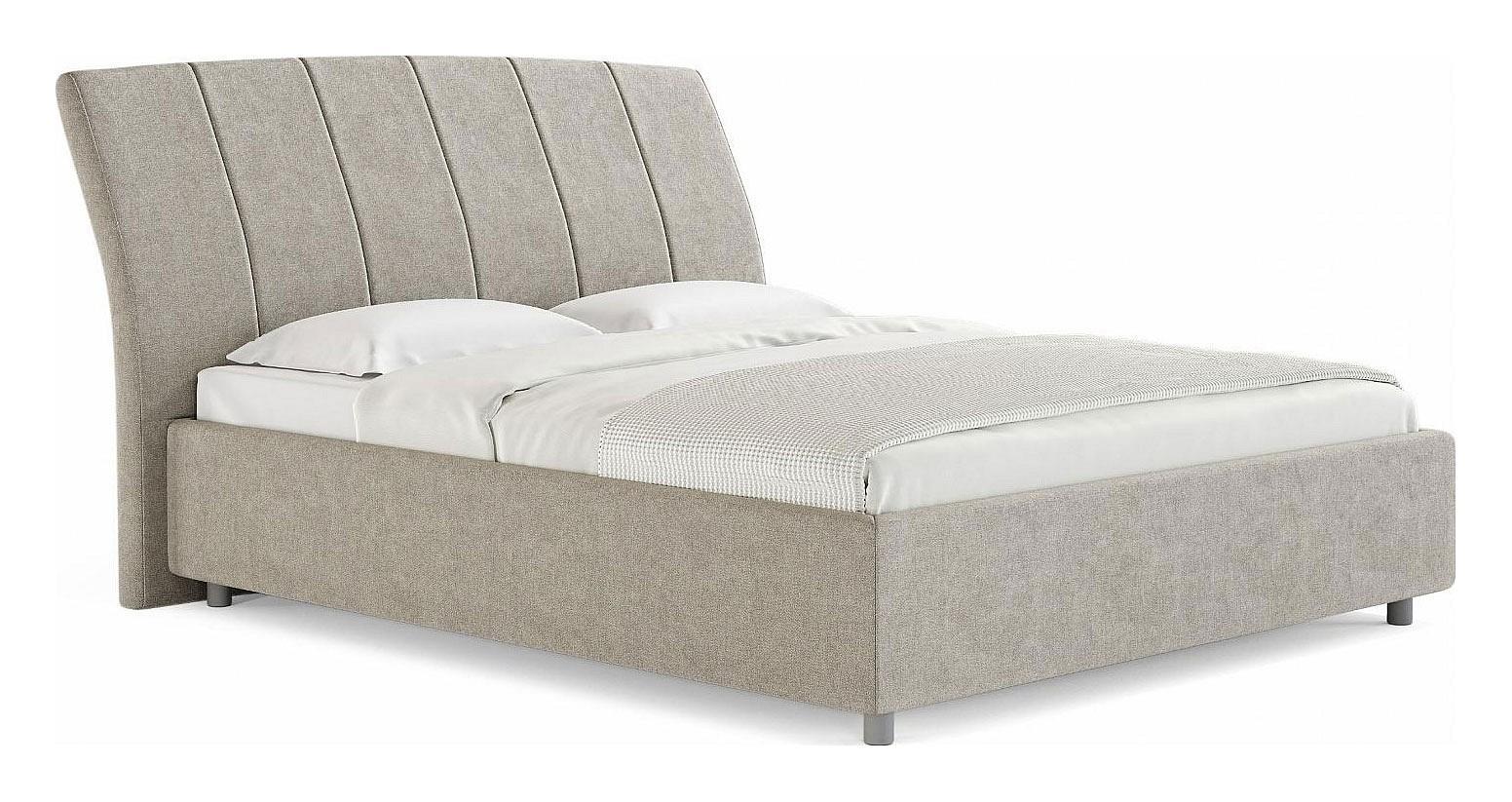 Стильная интерьерная кровать с изогнутым изголовьем и широкими царгами. Модель изготовлена из ДСП. В комплект кровати входит кроватное основание. Каркас основания выполнен из металла, ламели - из берёзы.