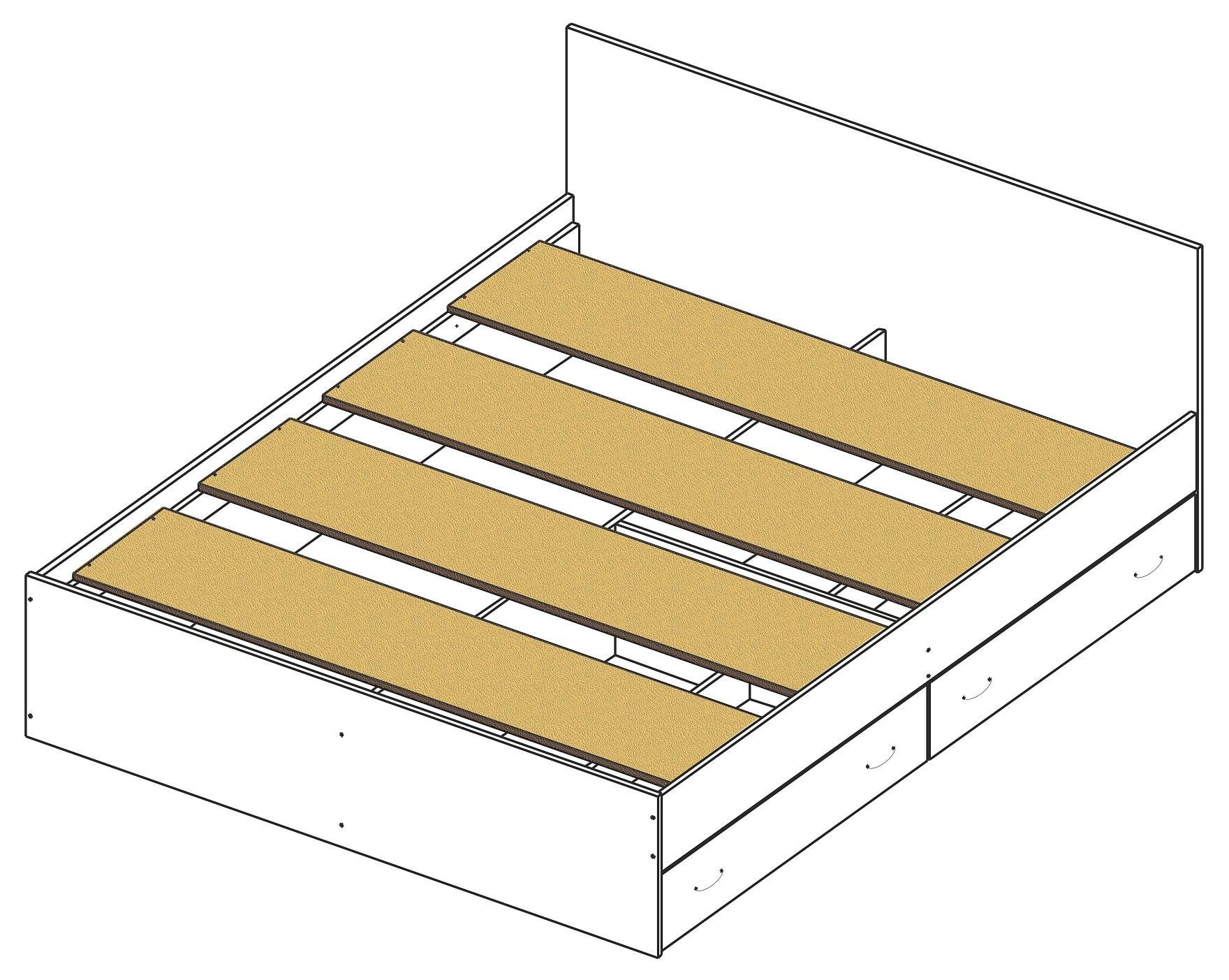 Кровать укомплектована двумя выдвижными ящиками – ящики могут быть установлены с любой стороны по длине кровати. С другой стороны – царга.