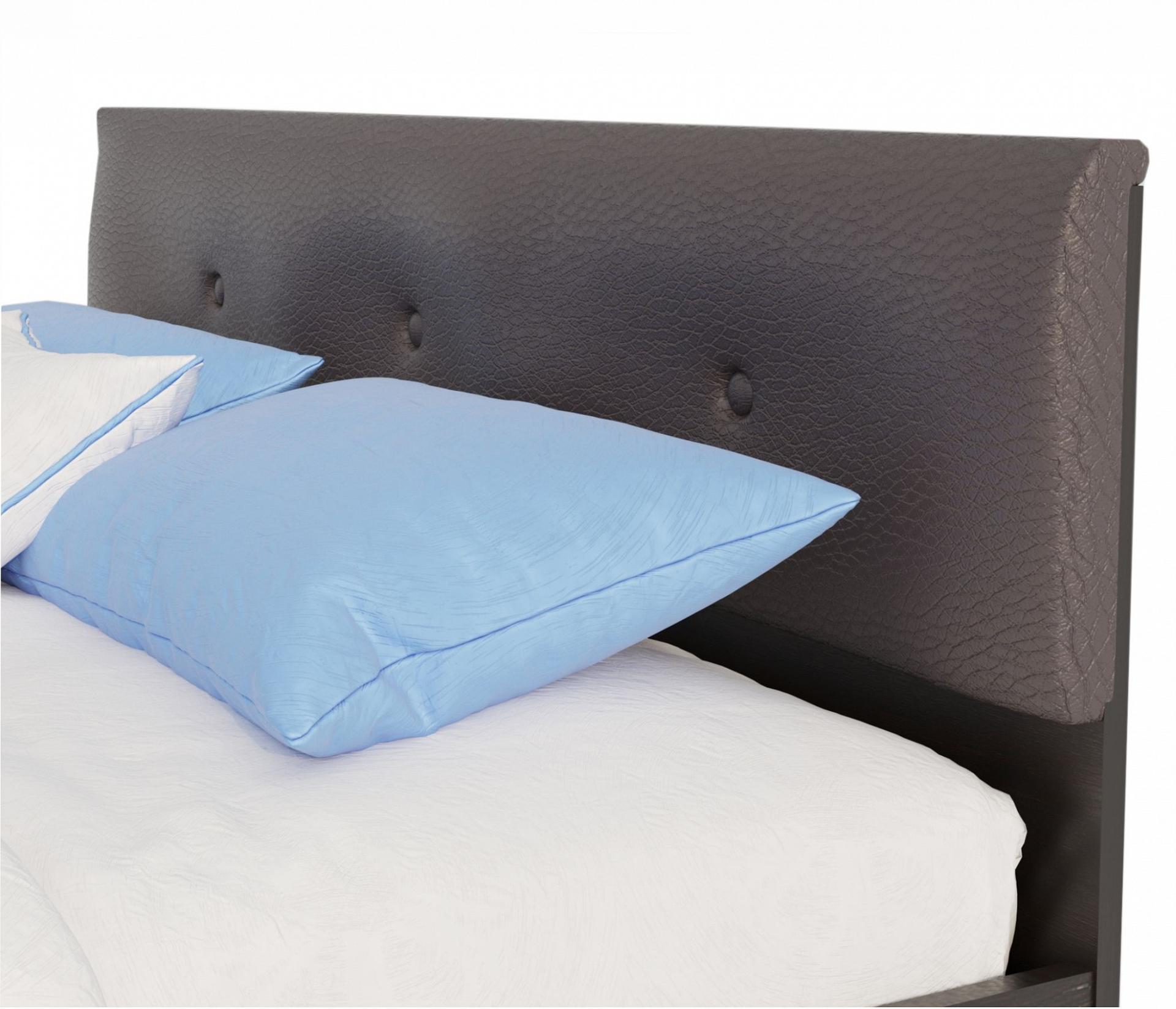 Двуспальная кровать с мягким кожаным изголовьем Виктория ЭКО-П в цвете венге – интересное и стильное решение для вашей спальни.