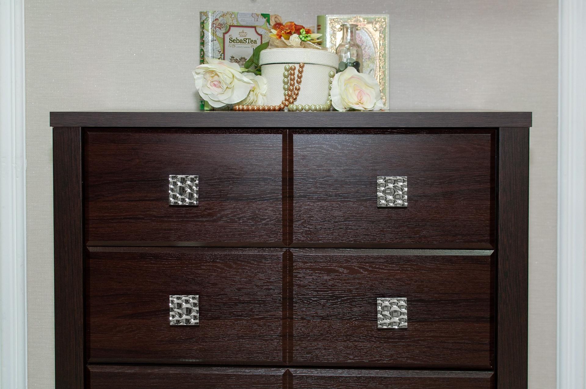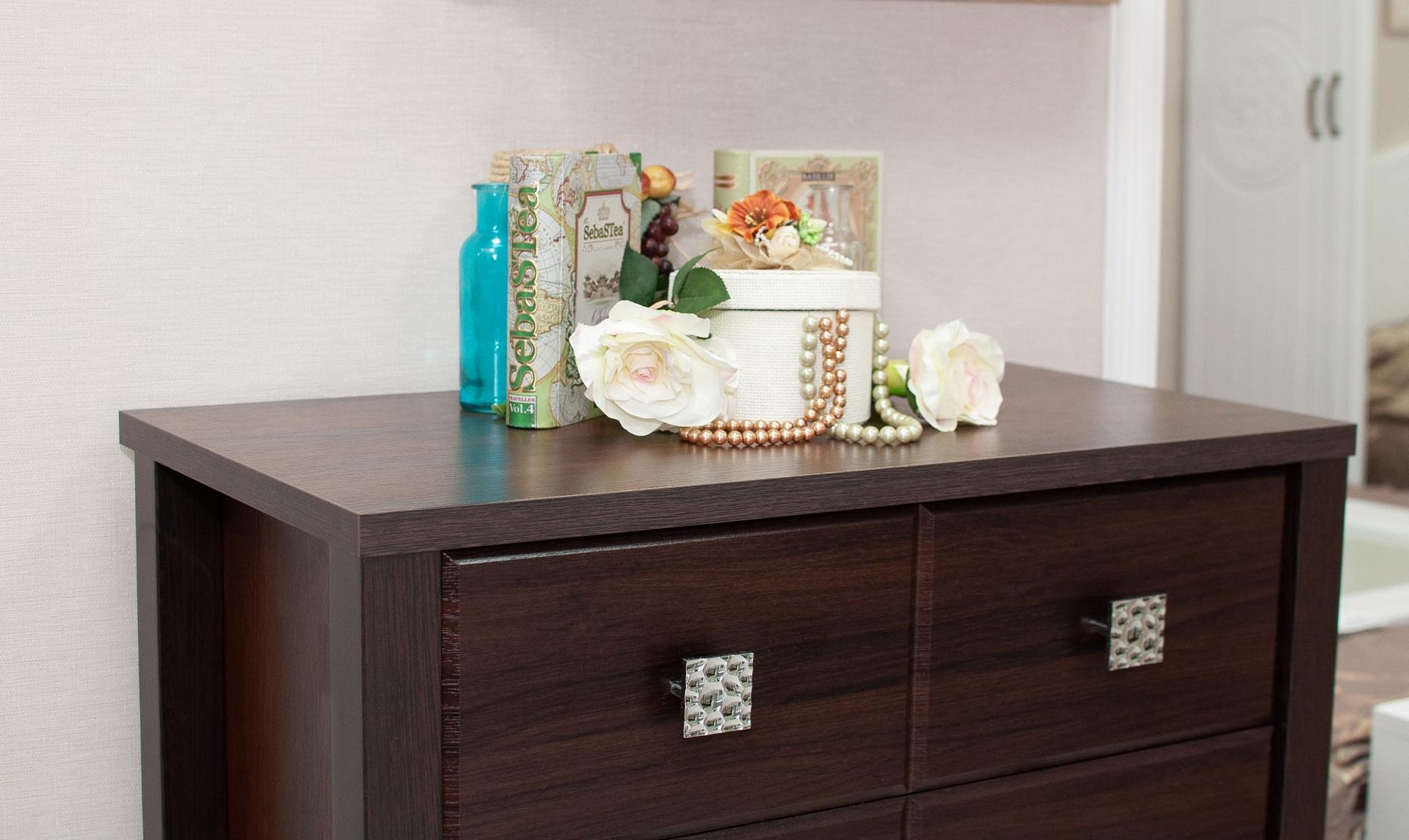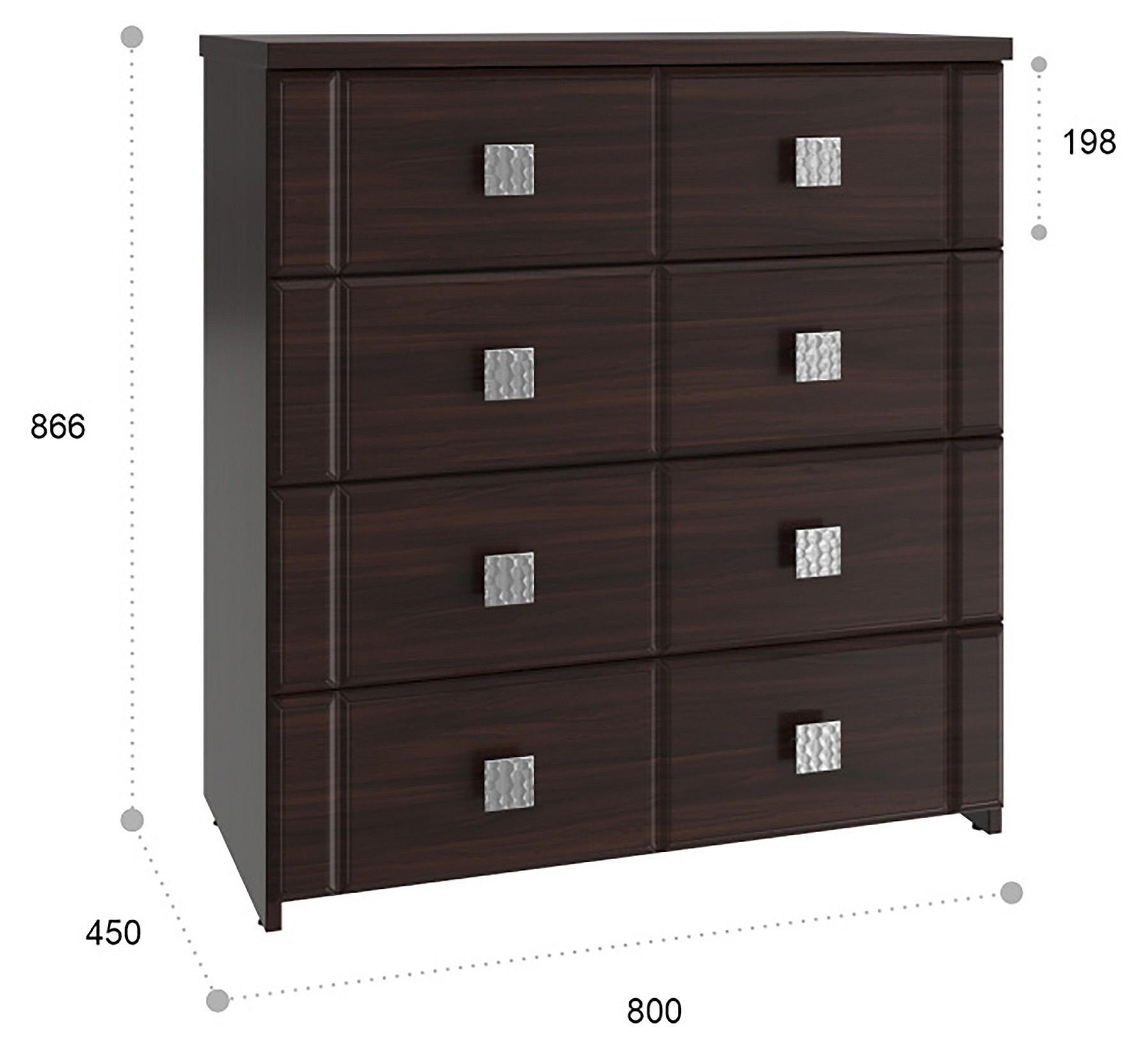Мелочи создают общее настроение в интерьере, особенно, если лежат не на своих местах. Справиться с этой задачей поможет комод Изабель ИЗ-50К KOM_IZ-50K_2, созданный актуальным брендом Компасс-мебель. Данная модель входит в коллекцию «Изабель» и стоит 13968 руб. Производитель предлагает следующую комплектацию: 4 ящика. Матовый корпус выполнен в благородном оттенке «орех темный», тонко перекликающимся с расцветкой фасада (орех темный), изготовленного из качественного сырья (МДФ). Благодаря оптимальным габаритам комода (изделие длиной 866 мм, шириной 800 мм и выступом 450 мм), вы сможете разместить в нем все необходимое, при этом сохранив полезное пространство в помещении.