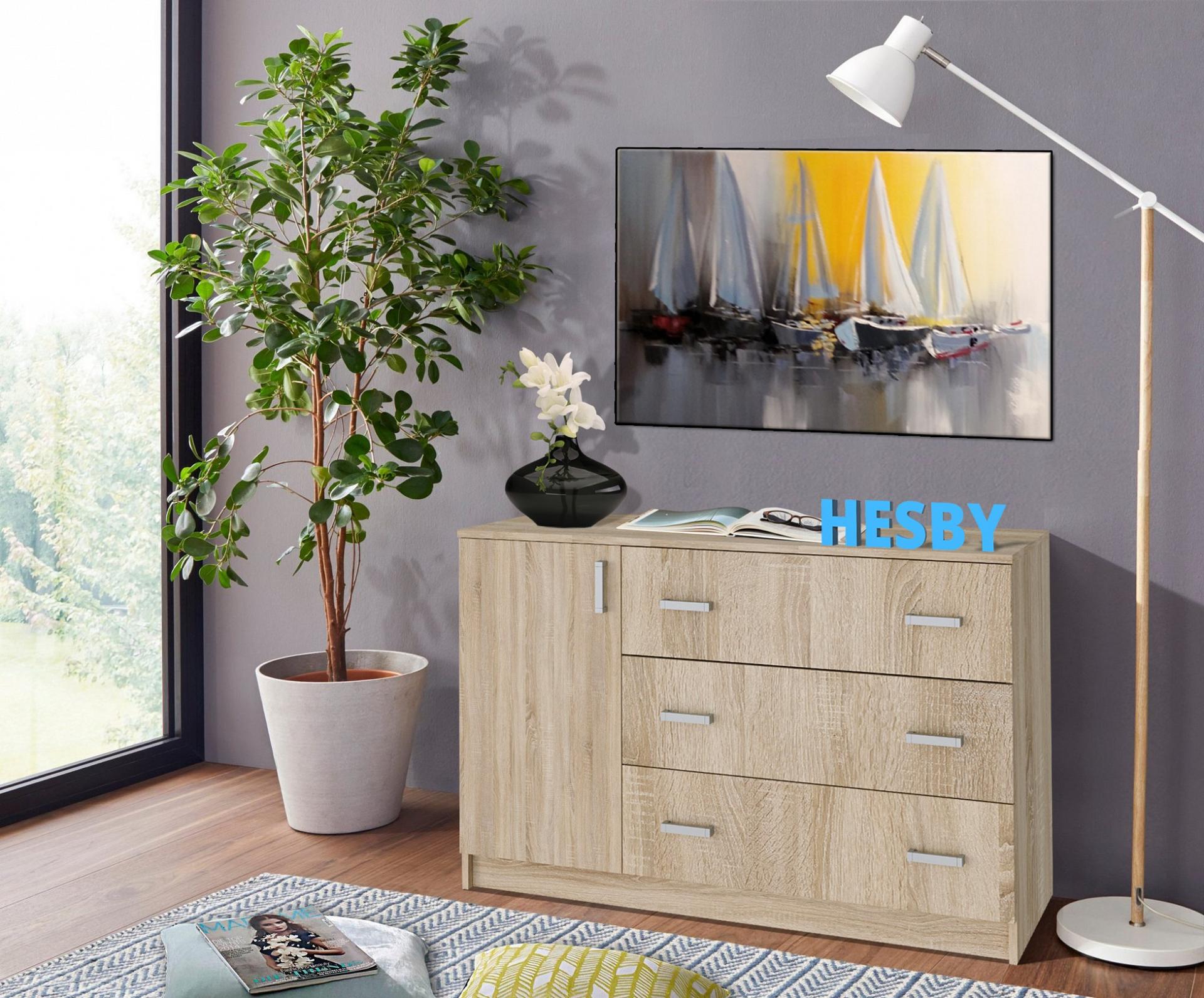 Мелочи создают общее настроение в интерьере, особенно, если лежат не на своем месте. Справиться с этой задачей поможет комод Майями 1200 HSBN_10021, созданный актуальным брендом Hesby. Данная модель входит в серию «Майями» и стоит 6750 руб. Производитель предлагает следующую комплектацию: 1 дверца, 1 полка, 3 ящика. Матовый корпус выполнен в благородном оттенке «дуб сонома», тонко перекликающимся с расцветкой фасада (дуб сонома), изготовленного из качественного сырья (ЛДСП Е1). Благодаря оптимальным габаритам комода (изделие длиной 774 мм, шириной 1182 мм и выступом 440 мм), вы сможете расположить в нем все необходимое, при этом сохранив полезное пространство в помещении.