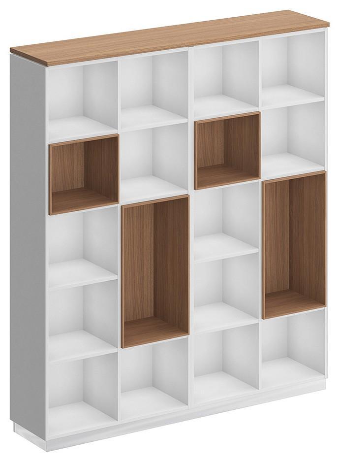 Стеллаж является стенкой из двух стеллажей под общим топом. Декоративный зазор между топом и боковыми стенками стеллажей.