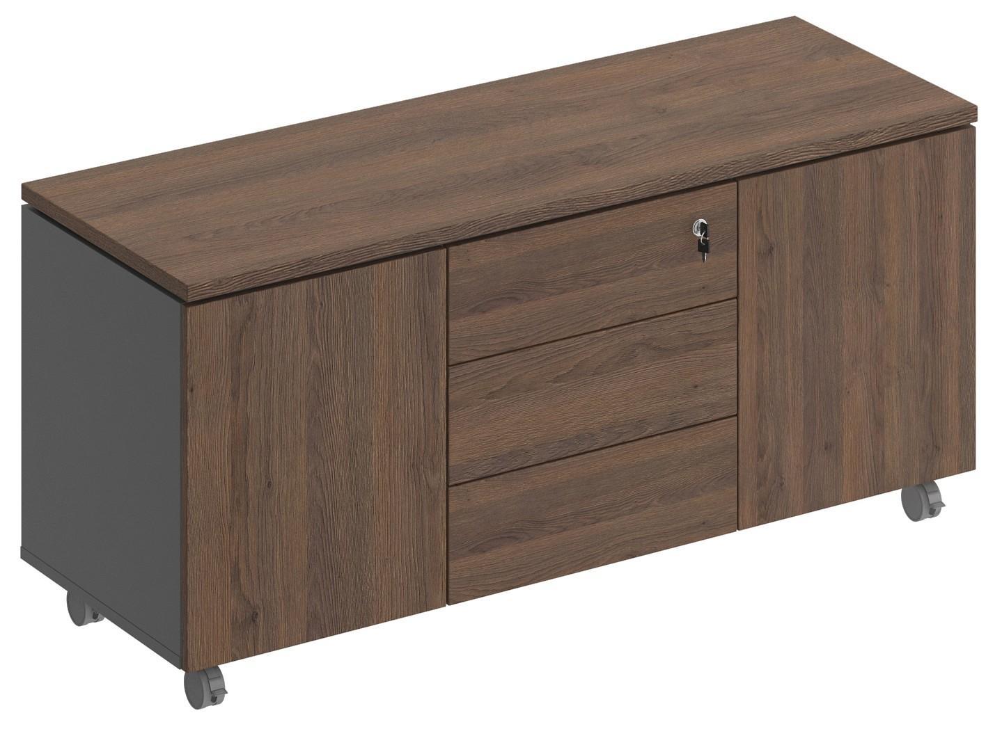 Двери без замка с системой открывания Push To Open (без ручек). Тумба устанавливается на прорезиненные колесные опоры (5 штук), две из них имеют стопор.