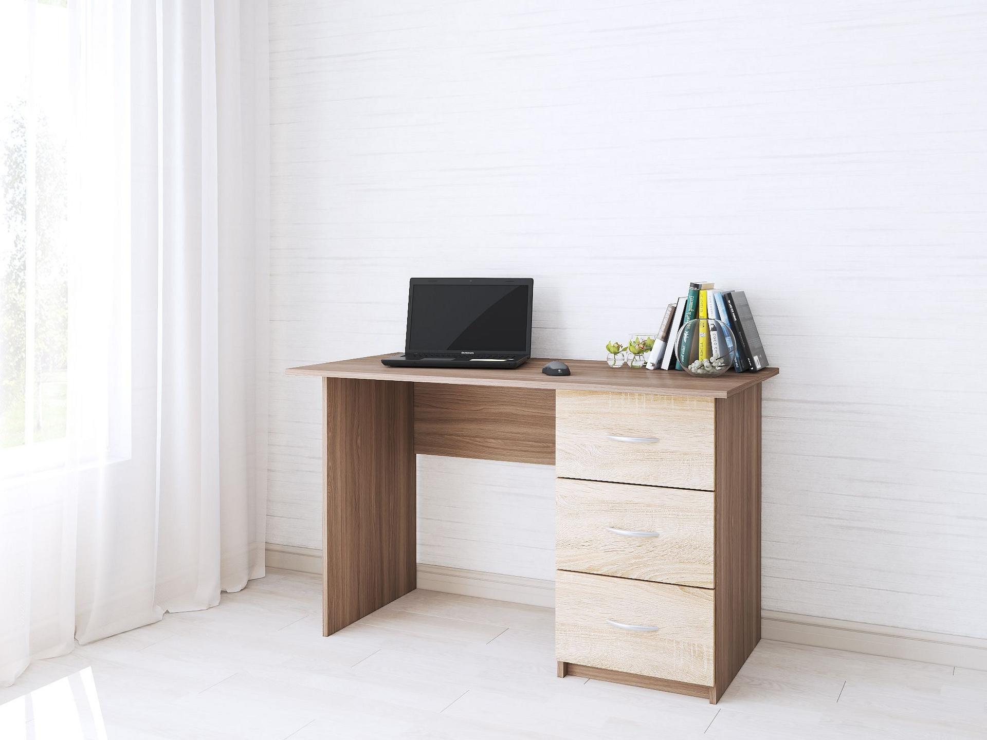 Учеба, работа или чтение – Стол письменный Сити-1 TKS_00-00003643, созданный брендом 3410885, отлично подойдет для реализации любых задач. Эта модель входит в серию «Сити-1» и способен подстроиться под нужды каждого члена семьи. Благодаря оптимальным размерам изделия (Х1200Х650 мм) вы сможете с комфортом заниматься любимыми и важными делами. Базовая комплектация включает в себя непосредственно письменный стол, тумбочка: 3 ящика. Для изготовления корпуса был выбран ЛДСП Е1 в оттенке дуб сонома, ясень шимо, завершает дизайн матовый верхний слой, гармонично перекликающийся со столешницей. Купить данную модель вы можете по привлекательной цене, равной 4385 руб.