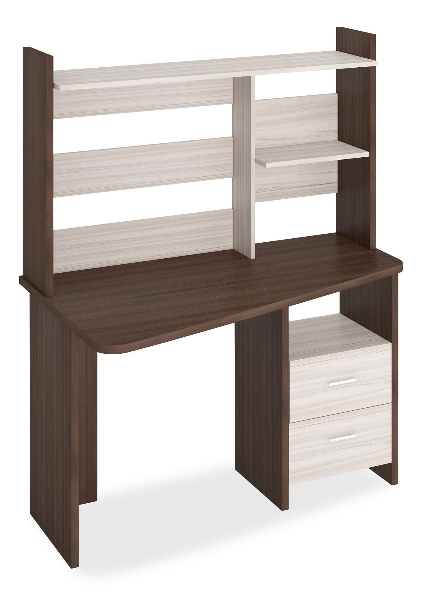 Компьютерный стол с трапециевидной столешницей и надстройкой.