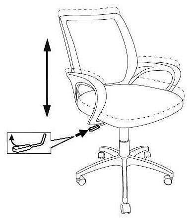 Регулировка высоты - газлифт. Крестовина хром. Подлокотники пластиковые. Материал обивки: спинка – сетка, сиденье – ткань.