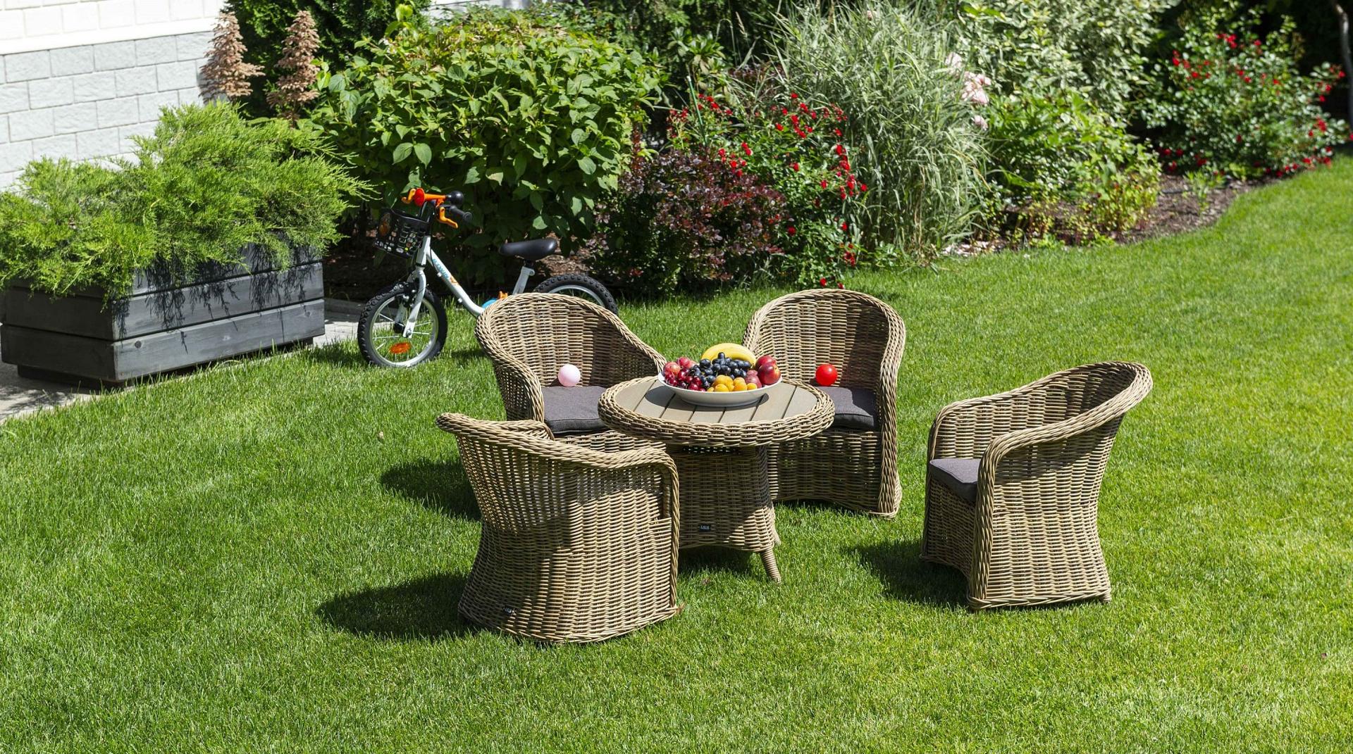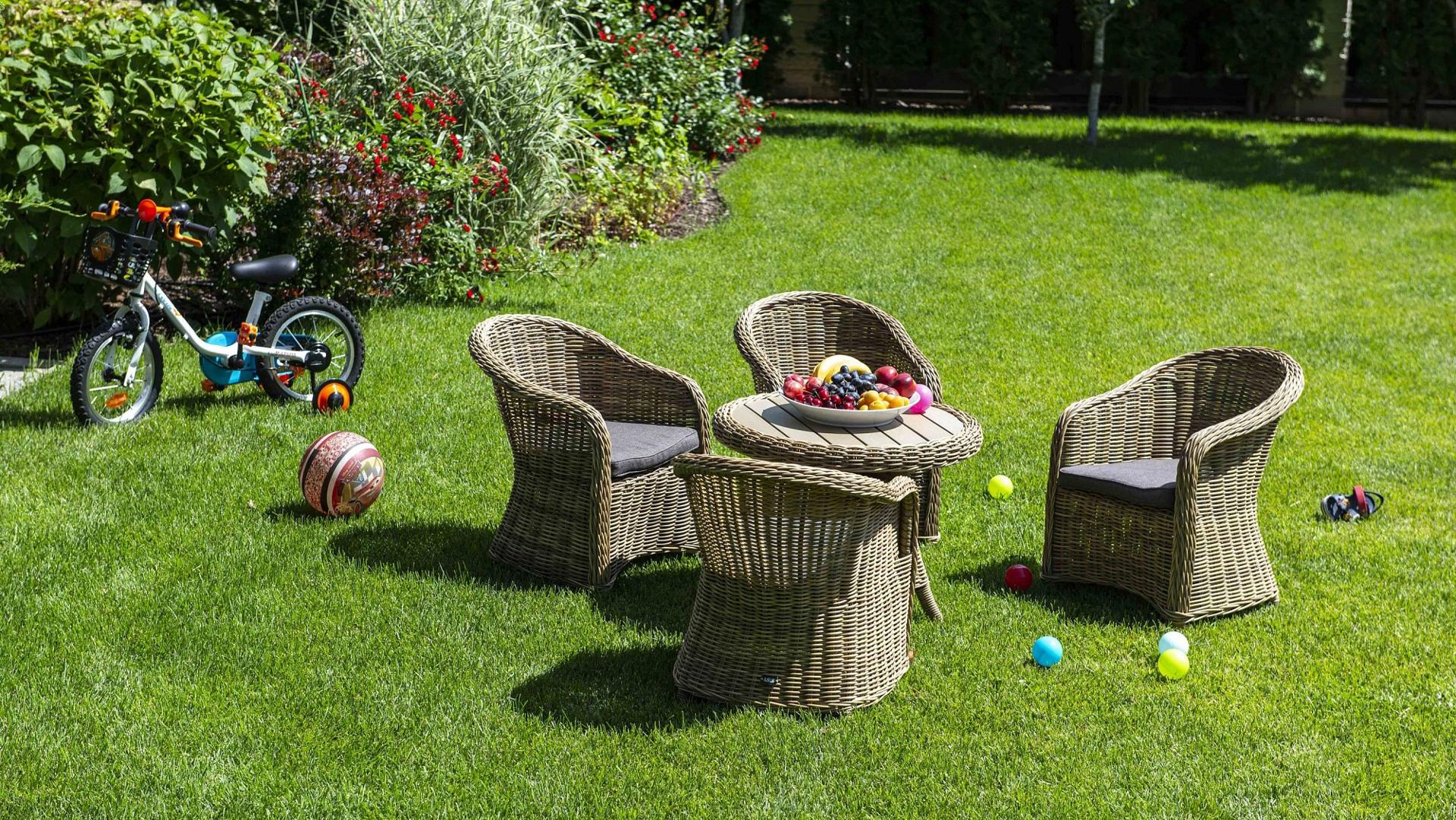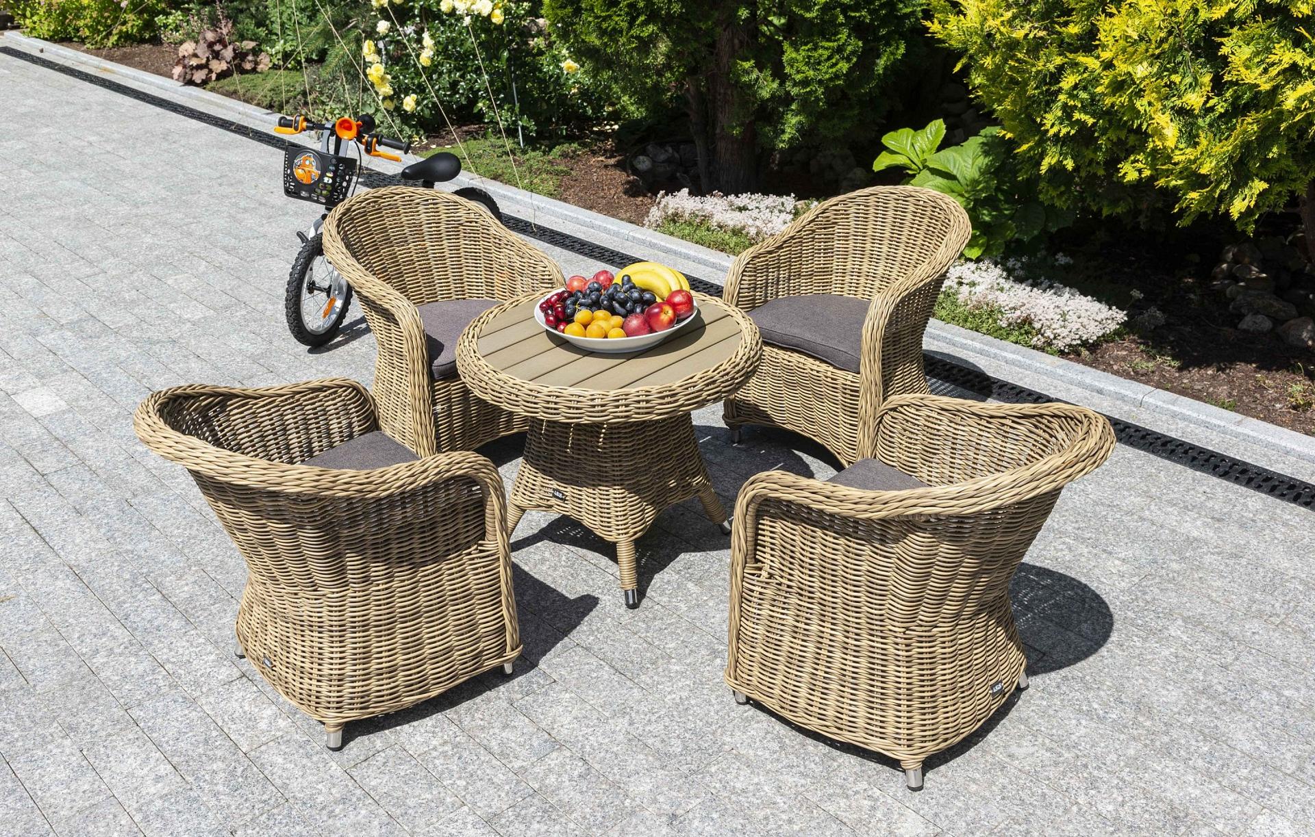 Столик Равенна может использоваться как в роли кофейного, так и в качестве детского обеденного стола, в комплект к которому подходят детские кресла из этой серии. Cтолик располагает прочным каркасом, который изготовлен из качественного алюминия, отвечающий за надежное расположение конструкции. Весь каркас оплетен вручную круглым искусственным ротангом соломенного цвета. Рабочая поверхность столика выполнена из древесно-полимерного композита (ДПК). Материал обладает высокой износостойкостью и прочностью в ходе эксплуатации.