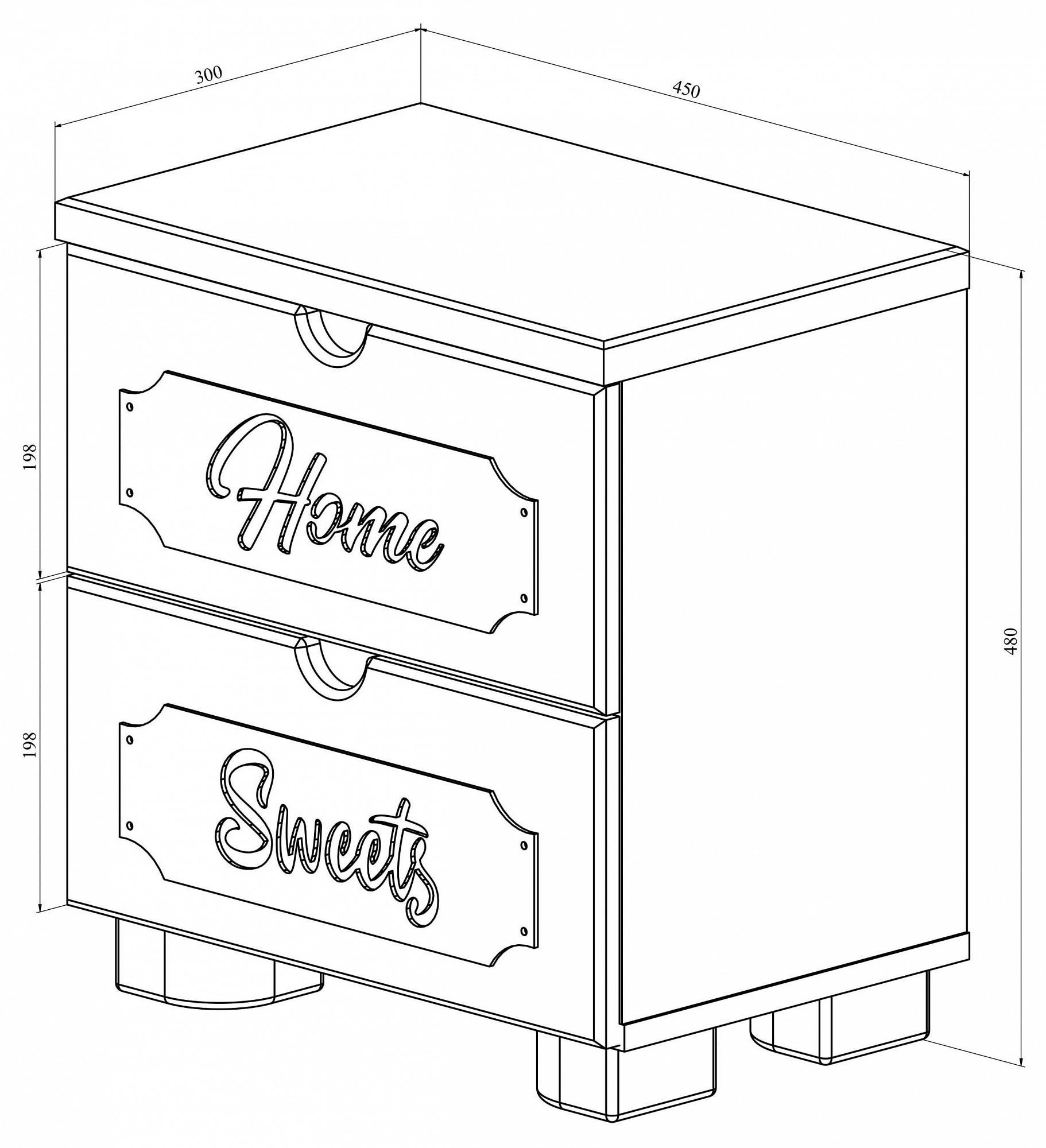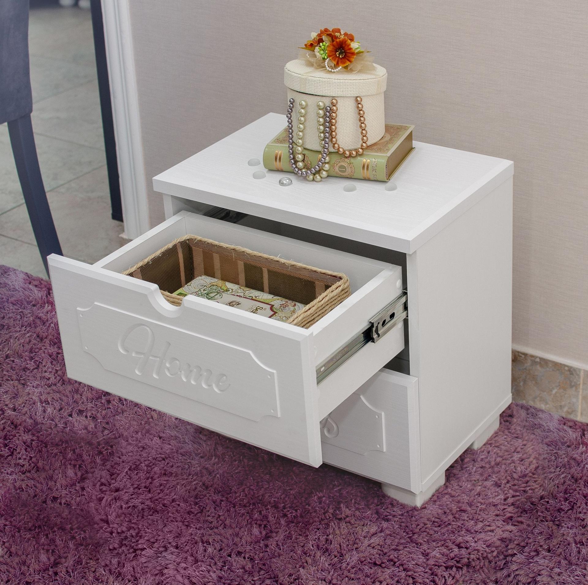 Тумба с 2-мя ящиками ДримСтар (белое дерево)
