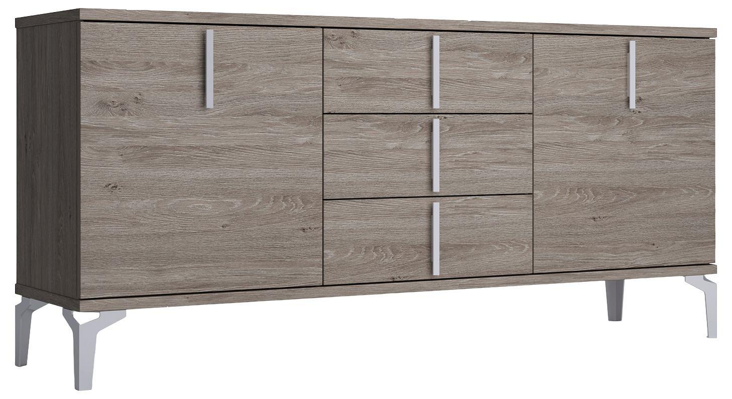 Используйте тумбу Вега как ТВ-тумбу или как комод для хранения вещей, украшайте ваш интерьер, установив на столешницу красивые предметы. Элегантная текстура ЛДСП дуб верцаска будет прекрасно сочетаться с интерьером в светлых пастельных тонах. Украшением комода служит фурнитура в виде высоких опор и ручек цвета олово. Три выдвижных ящика и отделения с дверками по бокам приятно удивят вас своей вместительностью, при этом глубина изделия 404 мм, делает его довольно компактным, что является существенным достоинством, если нужно сэкономить пространство. Высококачественные и безопасные материалы, ЛДСП класса эмиссии Е1 гарантирует отсутствие вредных испарений с поверхности мебели. Скрытые направляющие позволяют ящикам выглядеть очень эстетично.