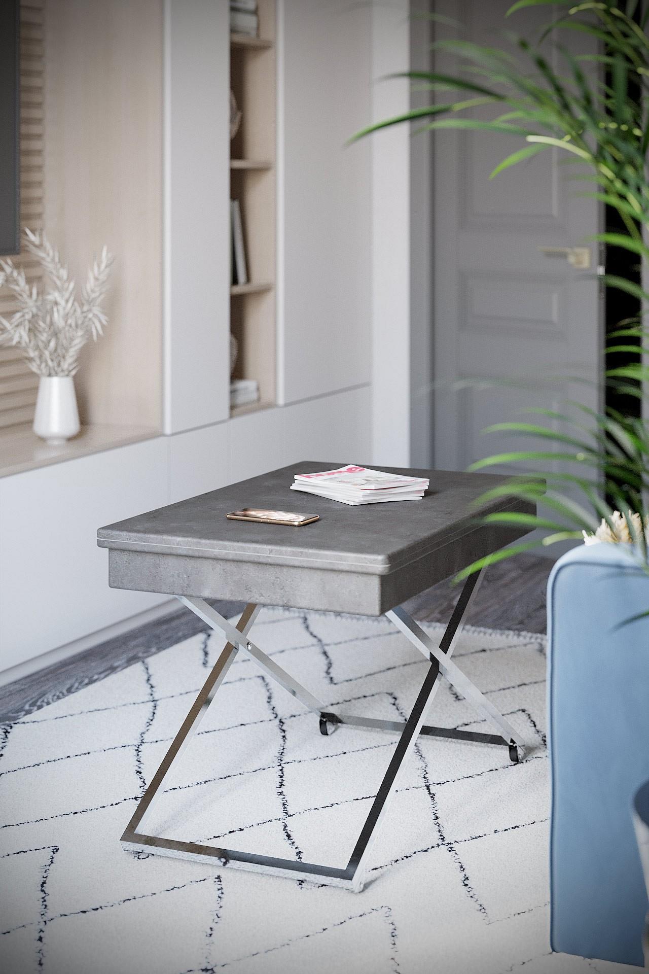 Особенностью такого предмета мебели является его способность трансформироваться: за считанные секунды можно увеличить столешницу или поменять высоту.