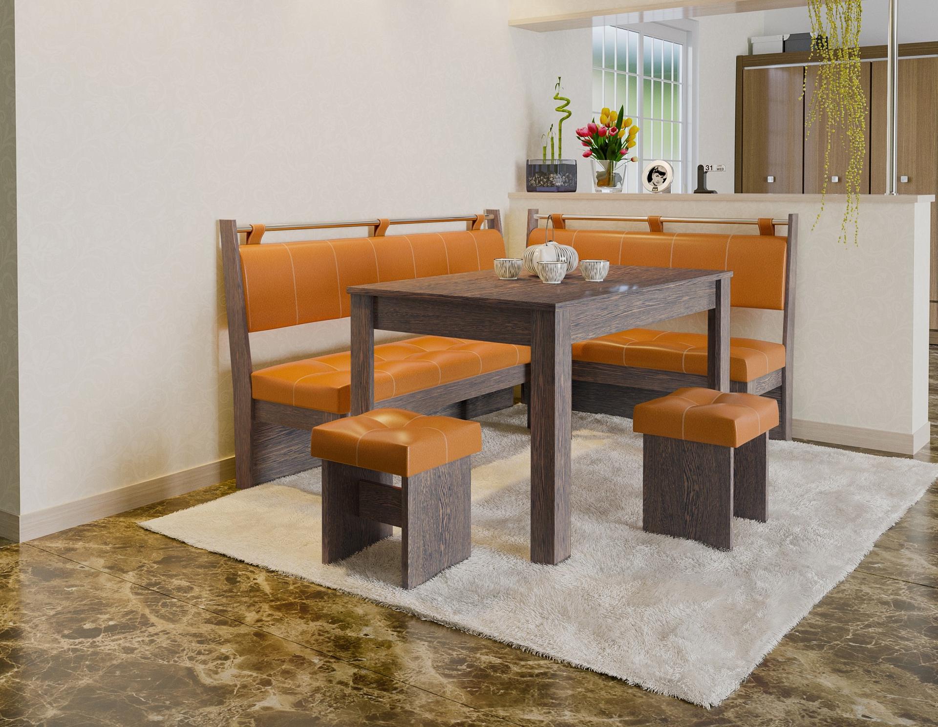 Кухонный уголок, пожалуй, одно из самых уютных мест в доме. Все члены семьи удобно располагаются на мягких сиденьях, облокачиваются на удобные спинки и наслаждаются ужином. Хотите, чтобы и ваша кухня стала такой привлекательной? Тогда вам обязательно стоит обратить свое внимание на уголок кухонный Остин ETO_00-00001915 из коллекции «Остин». Данная модель элегантна и комфортна, угол универсальный, поэтому изделие отлично впишется в любую обеденную зону. В комплект, представленный брендом ЭТОмебель, входит стол - 1200x600x740 мм диван - 1534x1134x940 мм 2 табурета - 330x330x465 мм, стол не раскладывается. Столешница выполнена из ЛДСП Е1 в оттенке «венге», отлично дополняя матовый корпус. Уголок кухонный Остин вы можете приобрести за 23100 руб. Приятных покупок!