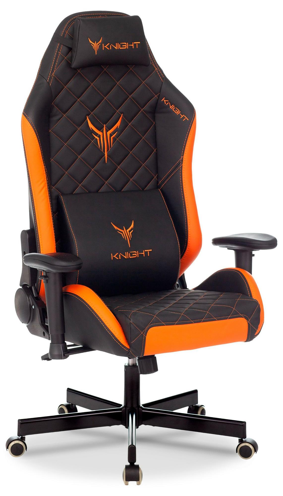 Геймерское кресло Knight Explore, оранжевый, черный, экокожа премиальная