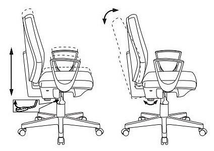 Пружинно-винтовой механизм качания спинки без фиксации. Регулировка высоты - газлифт.