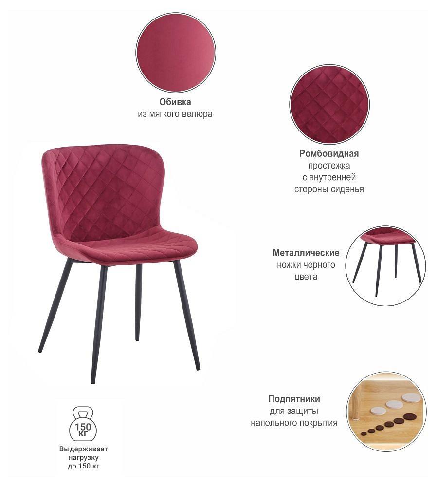 Ножки стула имеют прочную конструкцию, выполнены из металла окрашенного в чёрный цвет. Насыщенные цвета обивки станут акцентом в любом интерьере.