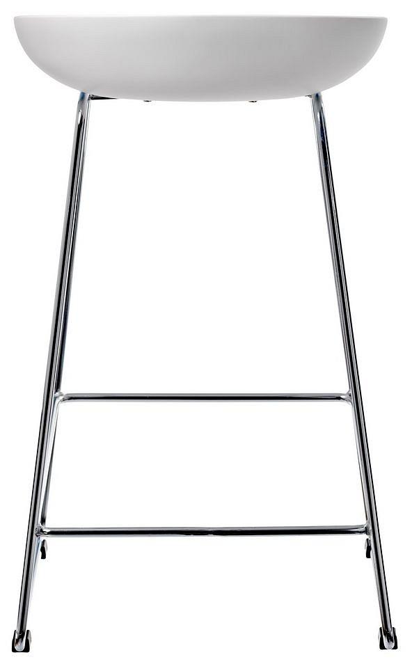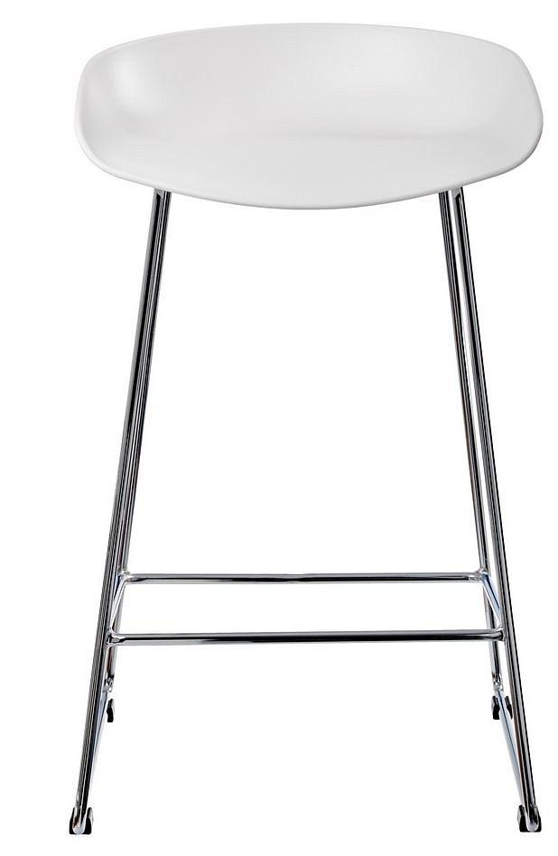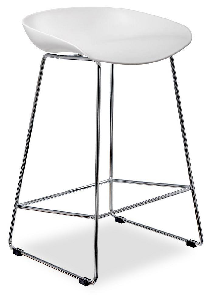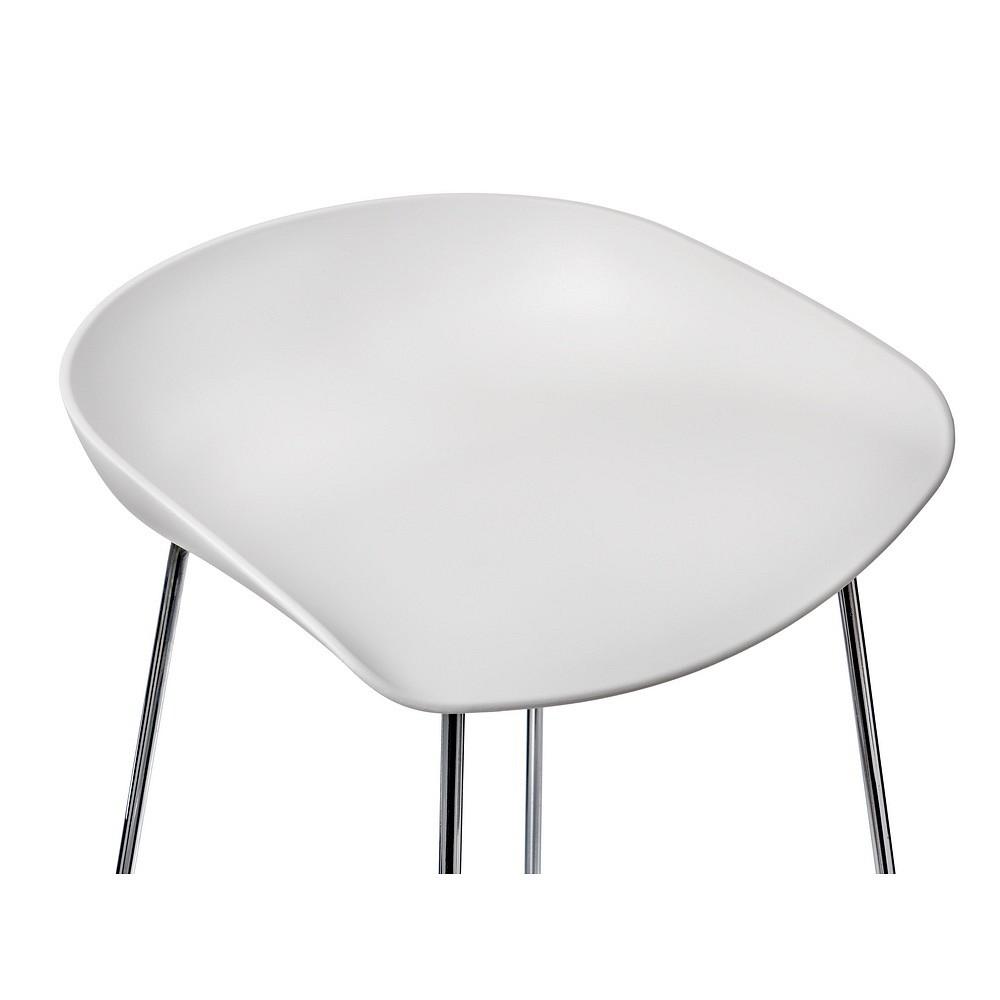 Утончённые металлические хромированные опоры, сиденье из пластика с невысокой спинкой - это минималистический современный дизайн барного стула NEO белый.