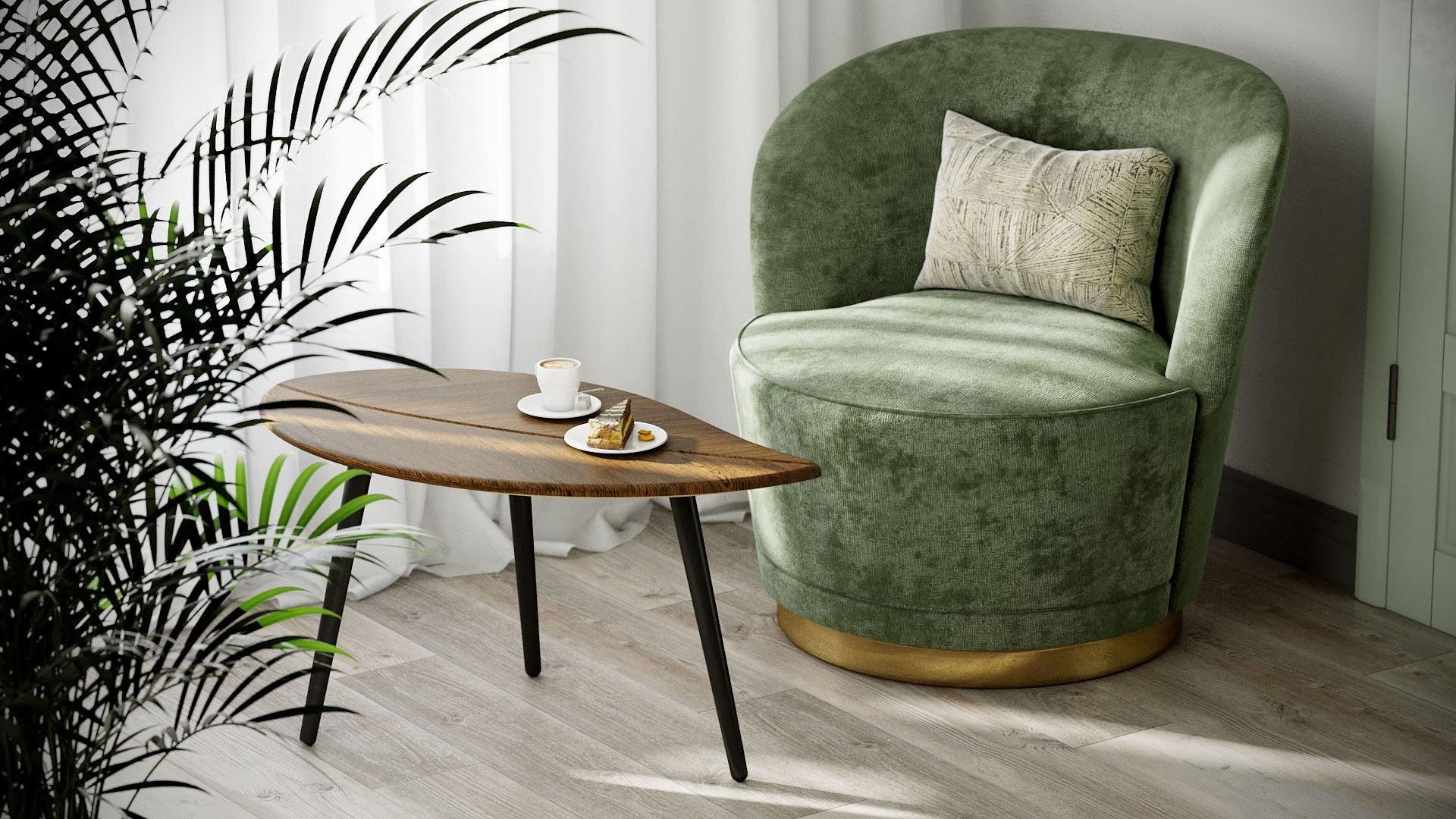 Особенностью дизайнерского решения журнального стола "Берли"является оригинальное сочетание фрезеровки столешницы в форме листа дерева и текстуры декоративного покрытия.